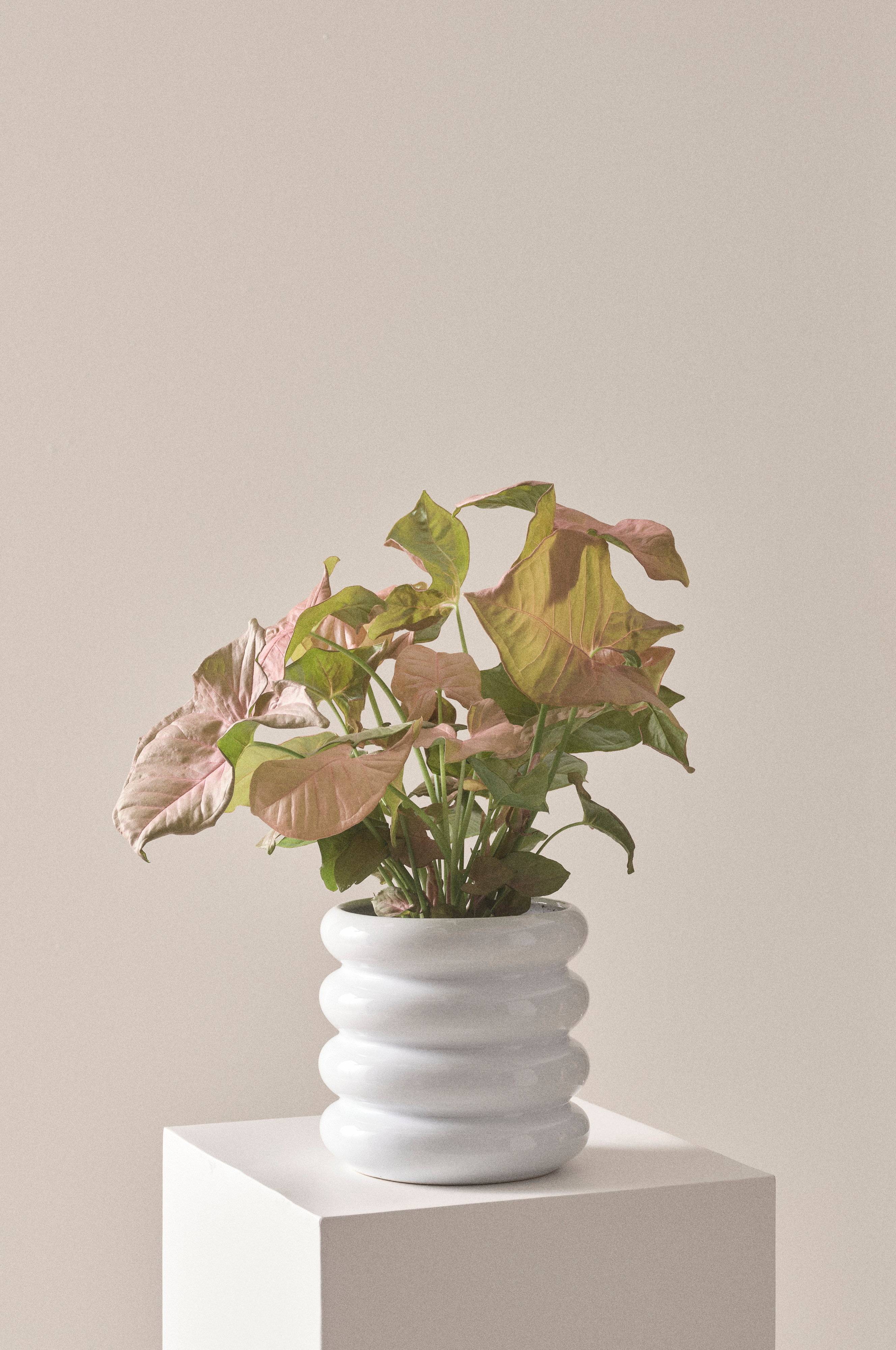 Trendikäs kasvi, jonka lehdet ovat vaaleanpunaisia ja vaaleanvihreitä. Sijoitetaan puolivarjoon, annetaan kuivahtaa kastelujen välissä. Ruukun koko 14 cm. Tuoksu: Ei tuoksua.