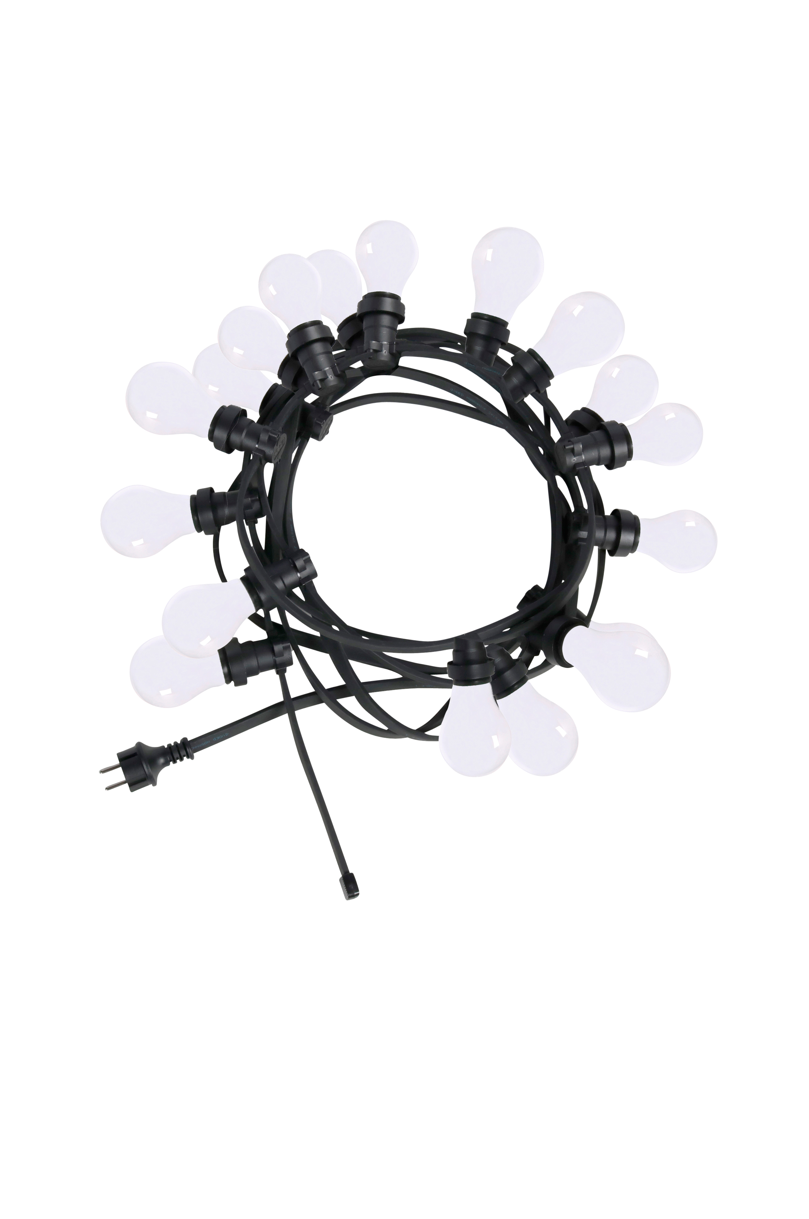Ulkokäyttöön sopiva tyylikäs ja eleetön valosarja, jossa 20 opaalivalonlähdettä.