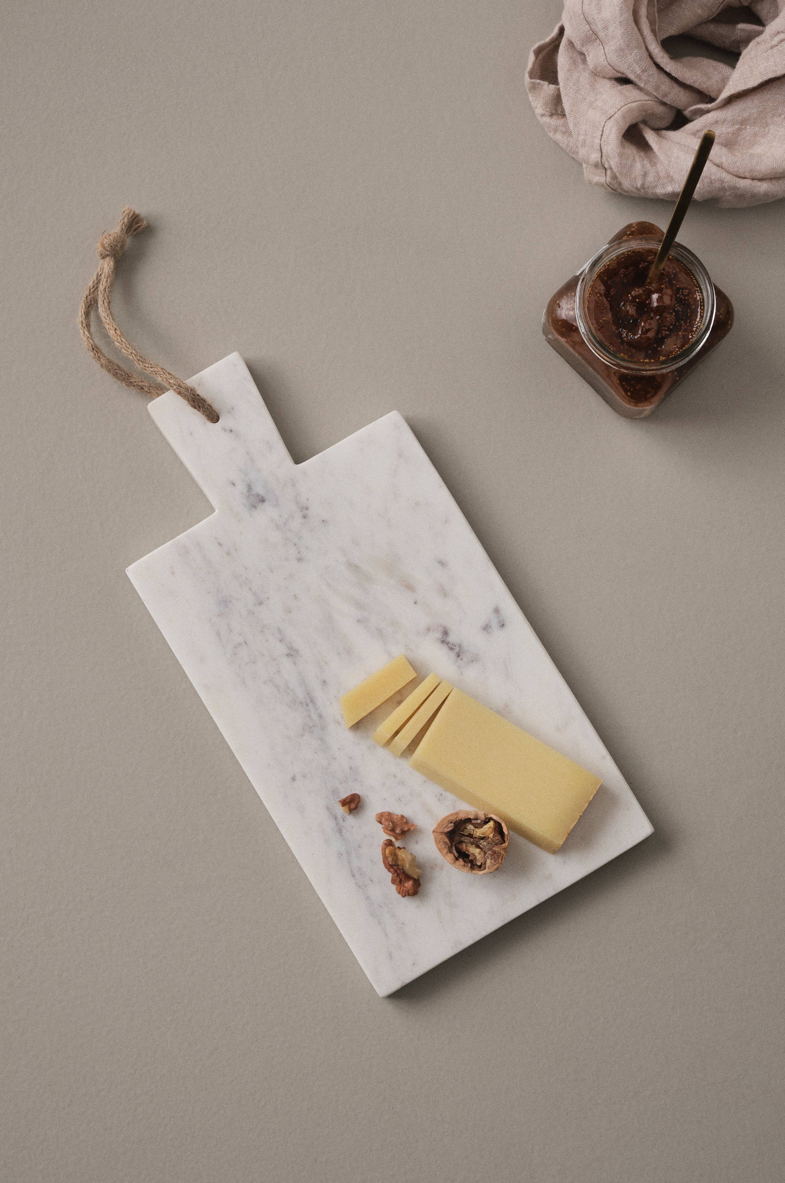 Suorakaiteenmuotoinen leikkuulauta marmoria. Kahvassa pieni aukko. Leikkuulauta on kaunis tarjoilualustana. Kaunis seinälle ripustettuna, kun sitä ei käytetä. Marmori on luonnonkivi, jonka kuvio vaihtelee aina hieman kivilajin koostumuksen mukaan. Tämä tekee jokaisesta leikkuulaudasta yksilöllisen.