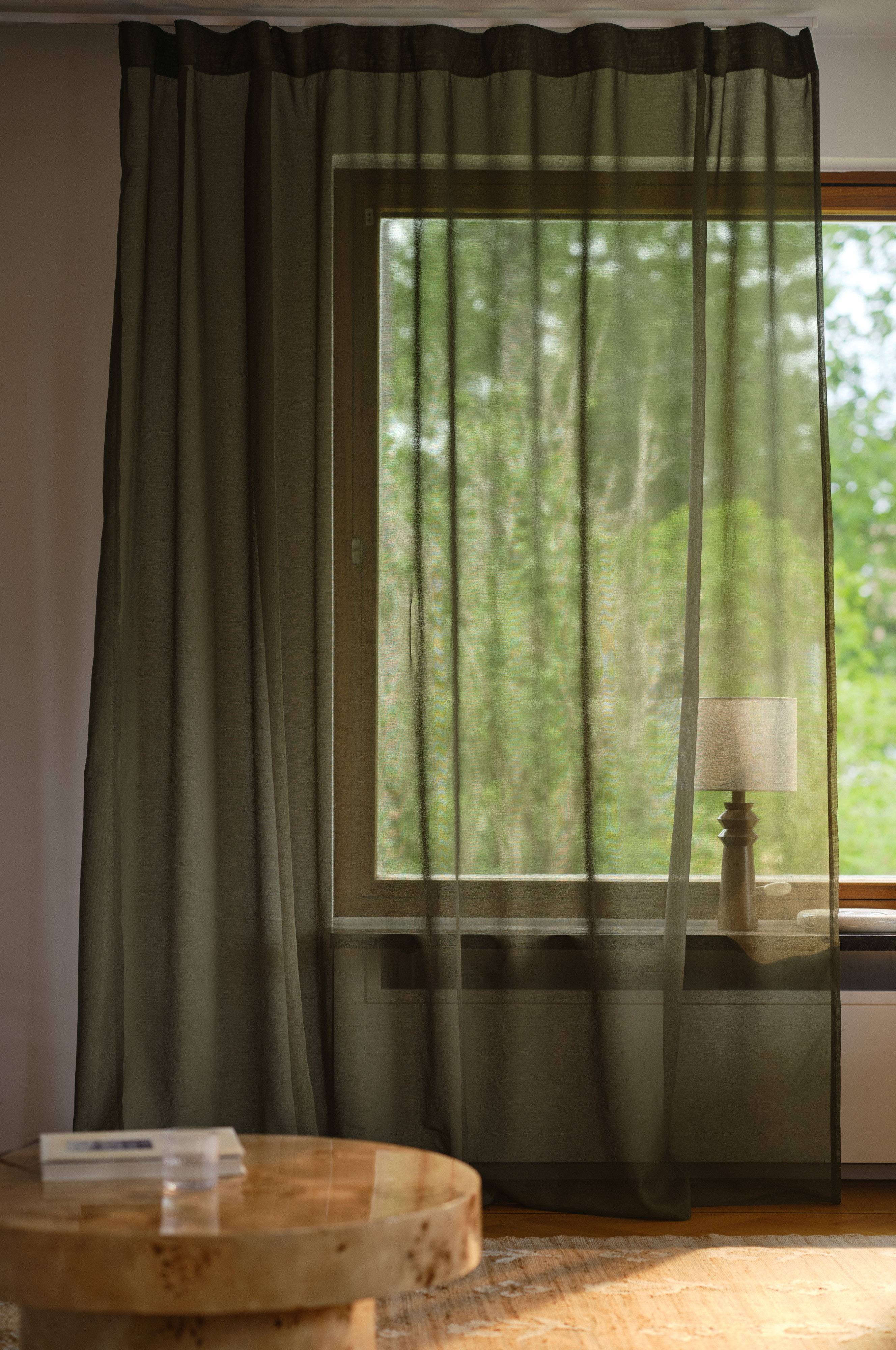 Erittäin leveä verho, joka on valmistettu herkästä ja ilmavasta polyesterivoilesta, joka laskeutuu helposti ja päästää runsaasti valoa sisään. Jos haluat vetää extra leveän pituuden esimerkiksi ikkunaosaan saadaksesi hieman yksityisyyttä, saat silti ihanan valon. Jos ripustat sen ikkunan sivulle, se ei vie niin paljon tilaa, mutta se koetaan siistimmäksi. Verhon materiaali on kierrätettyä.