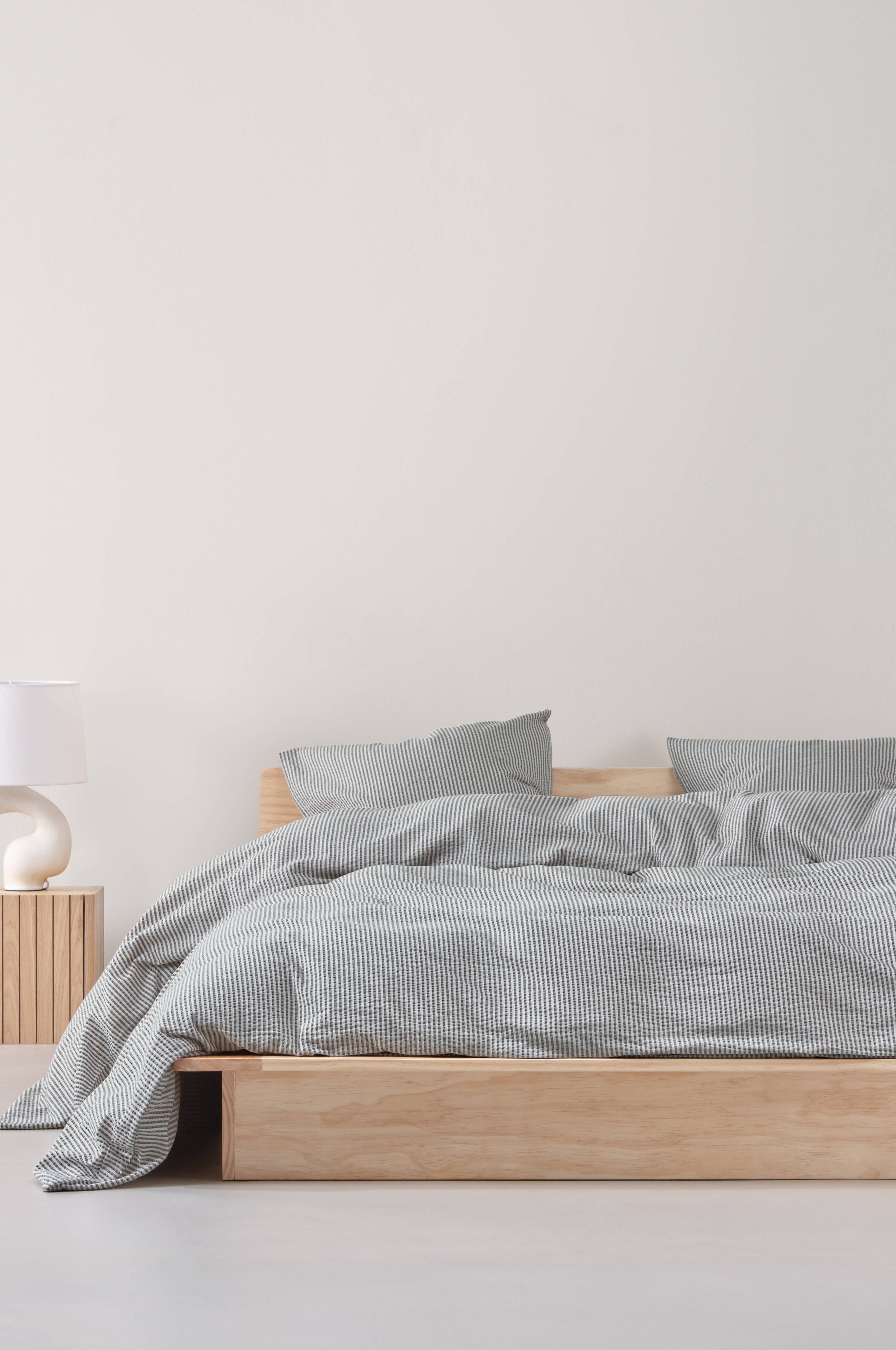 Alma-pussilakanasetti on valmistettu pehmeästä lantion aallosta, ja siinä on tyylikkäät langalla värjätyt raidat, jotka lisäävät romanttista tunnelmaa makuuhuoneeseesi. Nappikiinnityksellä varustetussa setissä on erittäin leveä pussilakana ja kaksi yhteensopivaa tyynyliinaa. Osana ALMA-perhettä tämä setti vahvistaa yhtenäistä estetiikkaa täydentävillä yhteensopivilla esineillä, sekoittaen sekä mukavuutta että tyyliä niille, jotka arvostavat romanttista tunnelmaa kotonaan.