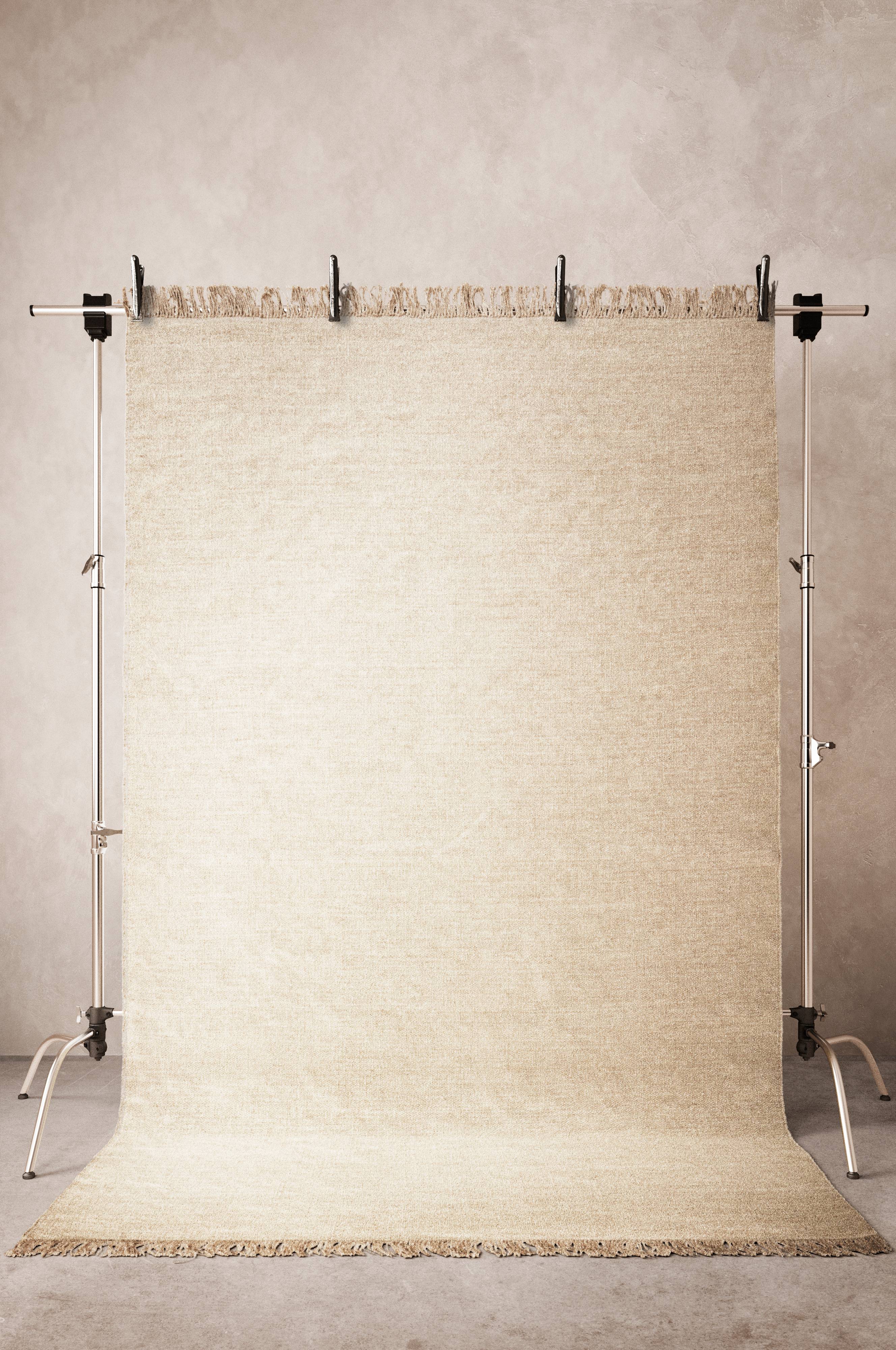 Käsinkudottu matto villaa ja puuvillaa, loimi juuttia. Hienolaatuinen matto luo luonnollisen ja maanläheisen vaikutelman. Hapsujen pituus 10 cm, 1400 g/m².