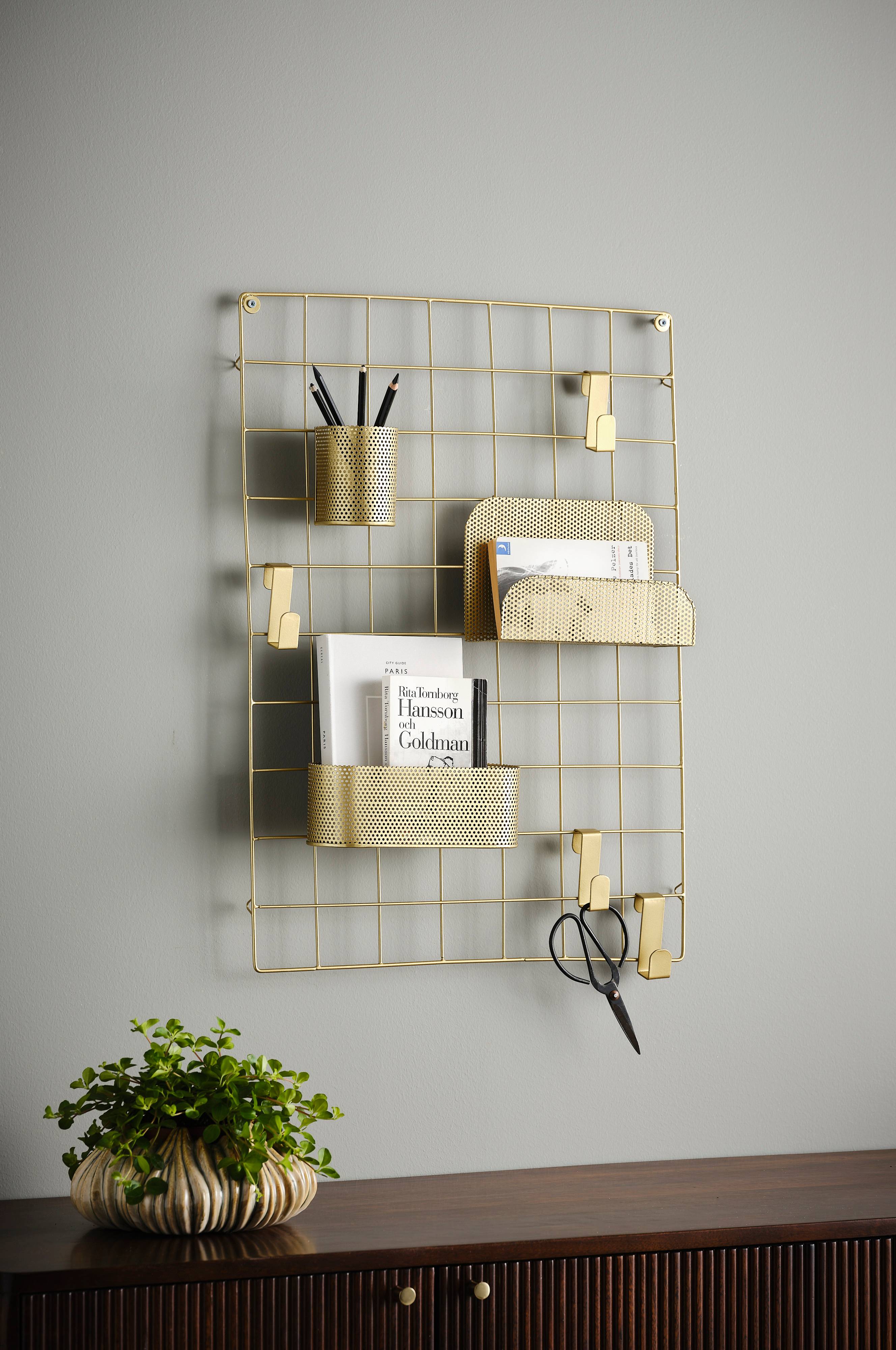 Seinäsäilytysratkaisu metallia. Kiinnitä verkko seinälle ja ripusta verkkoon mukana toimitettavat lokerot, pidike ja neljä koukkua. Kaikki osat ovat siirrettäviä, joten voit asetella ne haluamallasi tavalla. Käytännöllinen ja tyylikäs tapa pitää yllä järjestystä.