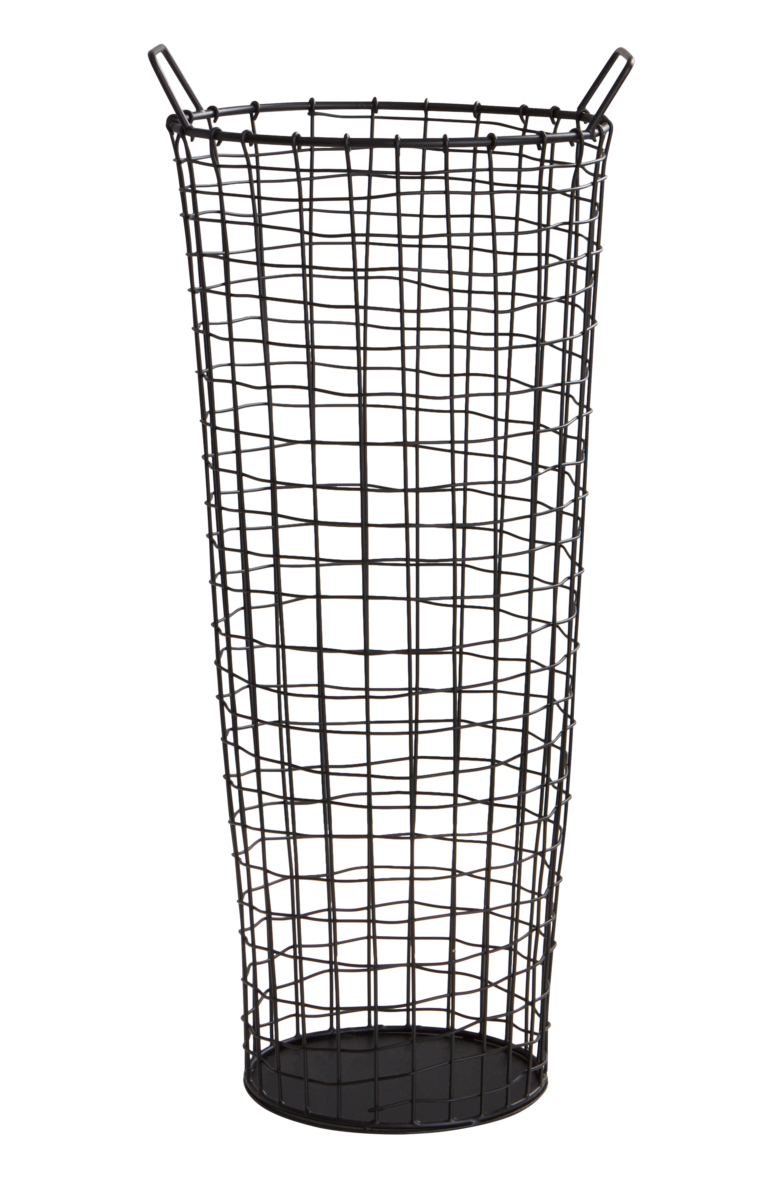 Rautainen sateenvarjoteline. Laadukasta metallityötä, jossa metallilangat on punottu epäsäännölleksi ja harvaksi kuvioksi. Tuloksena on tyylikäs sateenvarjoteline. Nyt tiedät, mistä löydät sateenvarjosi kiireessä ja sateen yllättäessä.