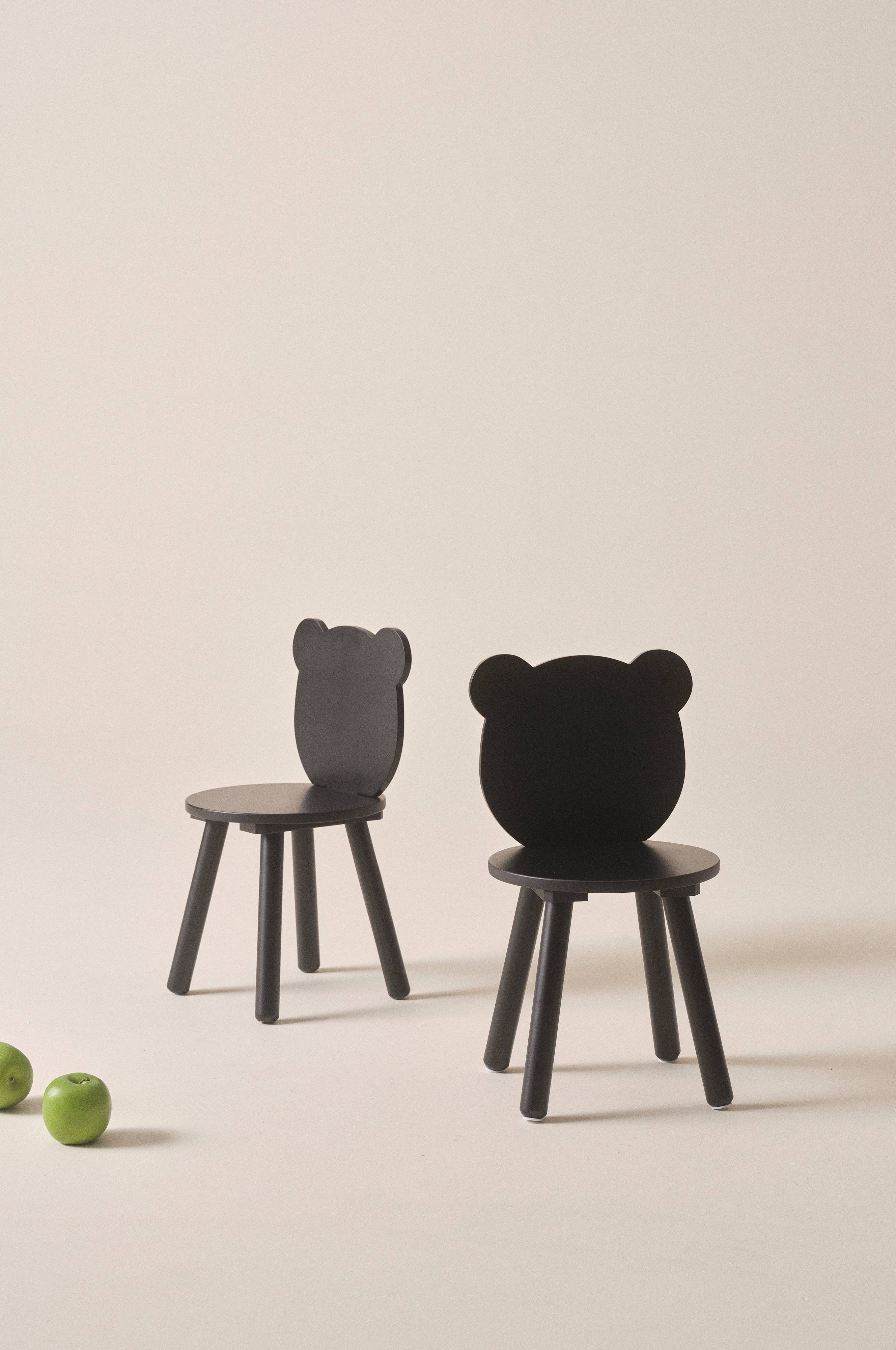 Lastentuolit maalattua massiivimäntyä ja MDF-levyä. 2/pakkaus. Pyöreä istuin ja karhun pään mallinen selkänoja. Pyöristetyt, alaspäin levenevät jalat vakauttavat tuolia, jos vaikka joku haluaisi kiivetä tuolille. Osittain koottava. Kokoamisohje mukana.