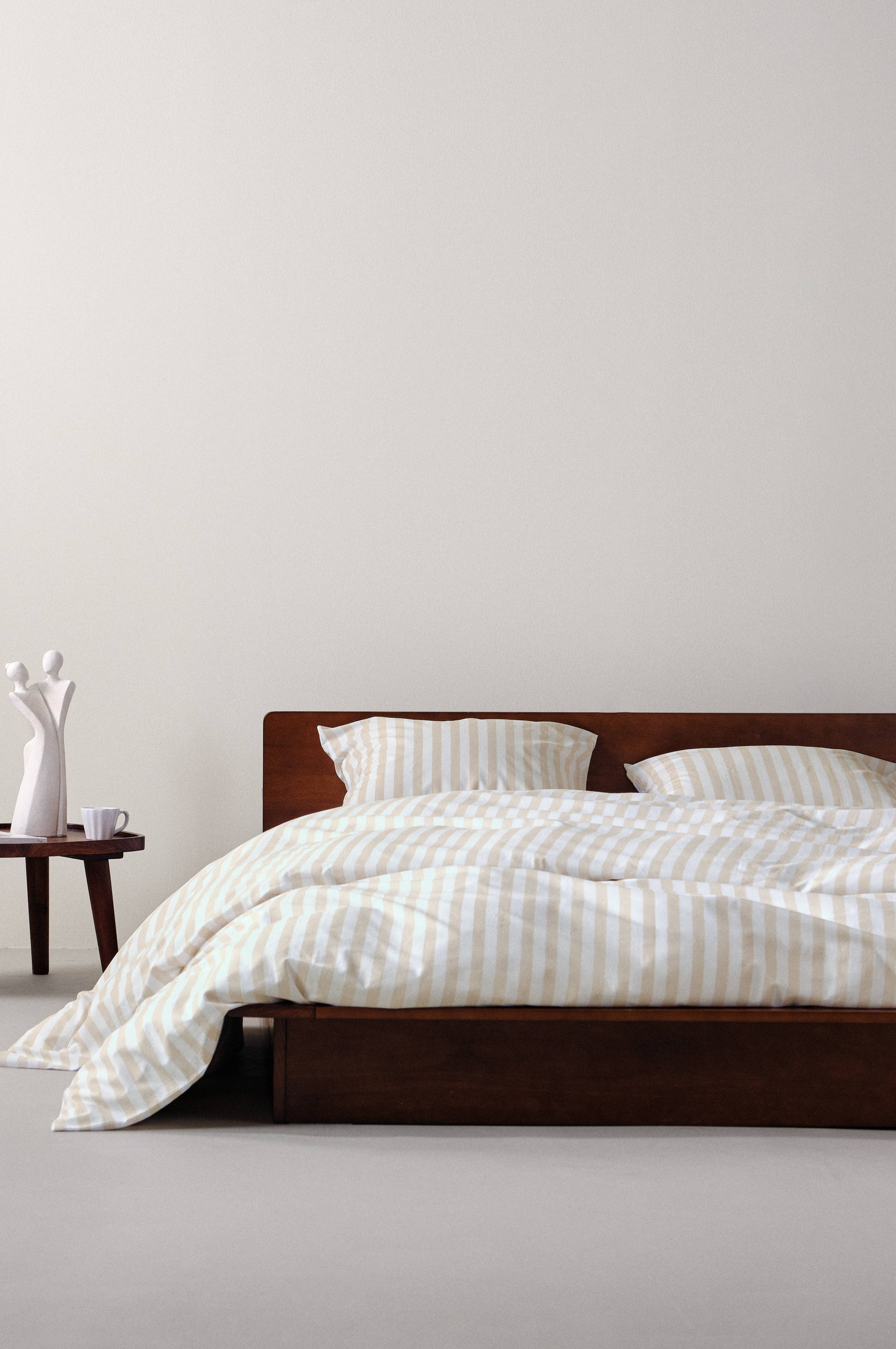Kapearaidallinen pussilakanasetti, jossa erittäin leveä pussilakana ja kaksi tyynyliinaa ekologista puuvillaa. Klassiset raidat sopivat sekä pienille että isoille. Kankaassa on miellyttävä painatus, puuvilla tuntuu viileältä ja miellyttävältä ihoa vasten ja vasta sijatut vuodevaatteet tekevät sängystä vastustamattoman. Painetussa raitakuvioissa on kirkkaat värit, ja joka toinen raita on valkoinen. Pussilakanan yläkulmissa on aukot, jotka helpottavat pussilakanan vetämistä peiton päälle. Langantiheys 144 tc. (Langantiheys kertoo lankojen lukumäärän, thread counts, neliötuuman alalla. Mitä suurempi langantiheys, sitä laadukkaampi kangas.)