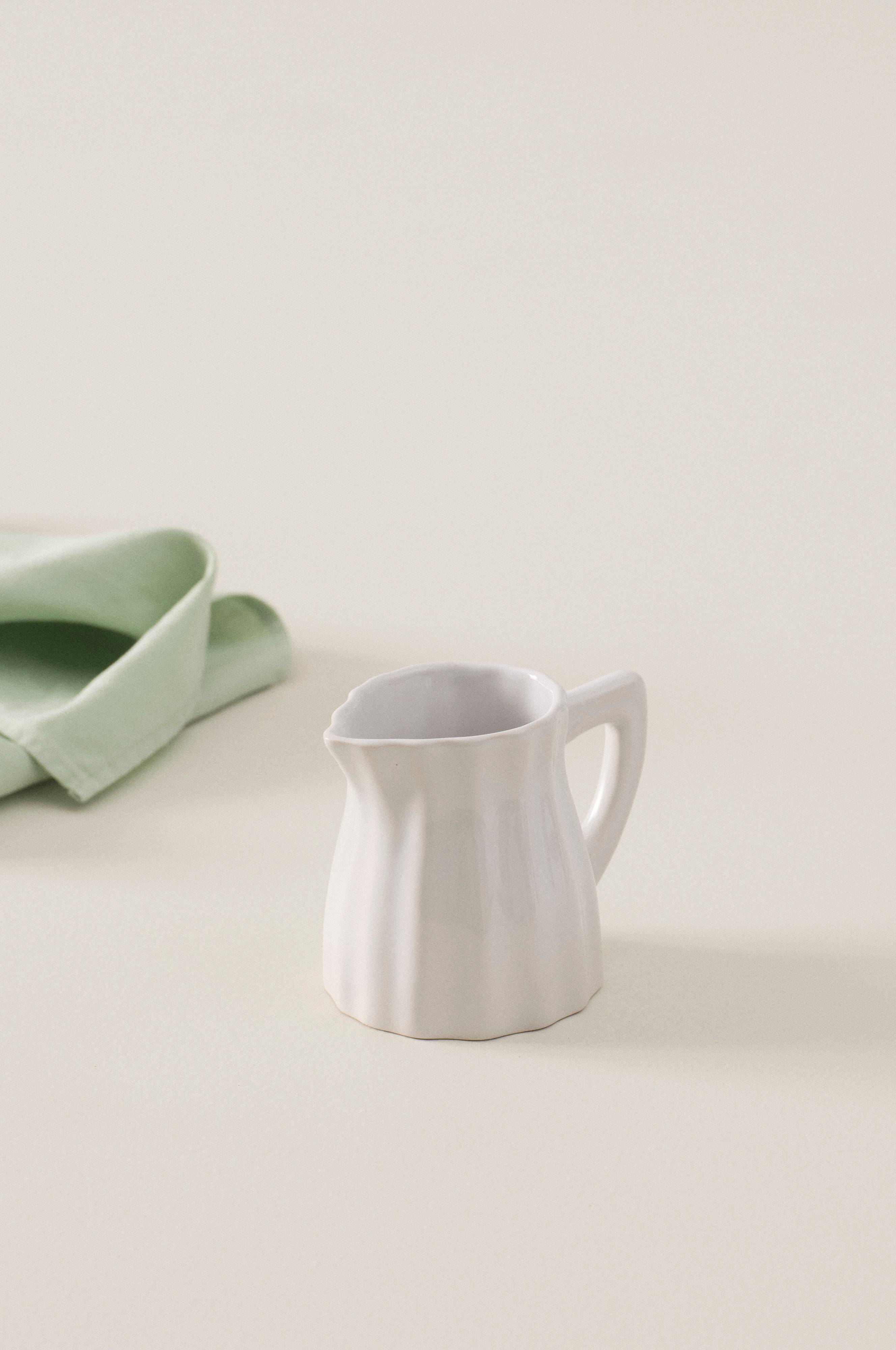 Maitokannu keramiikkaa, jossa reliefiraidat ja kaunis käsinmaalattu lasite. Myös sisäpinta on lasitettu. Käsinmaalattu lasite on hienoa käsityötä ja tekee jokaisesta tuotteesta ainutlaatuisen. Pieni kannu on monikäyttöinen, se sopii kahvimaito- tai vaniljakastikekannuksi sekä maljakoksi poimimallesi kukkakimpulle.