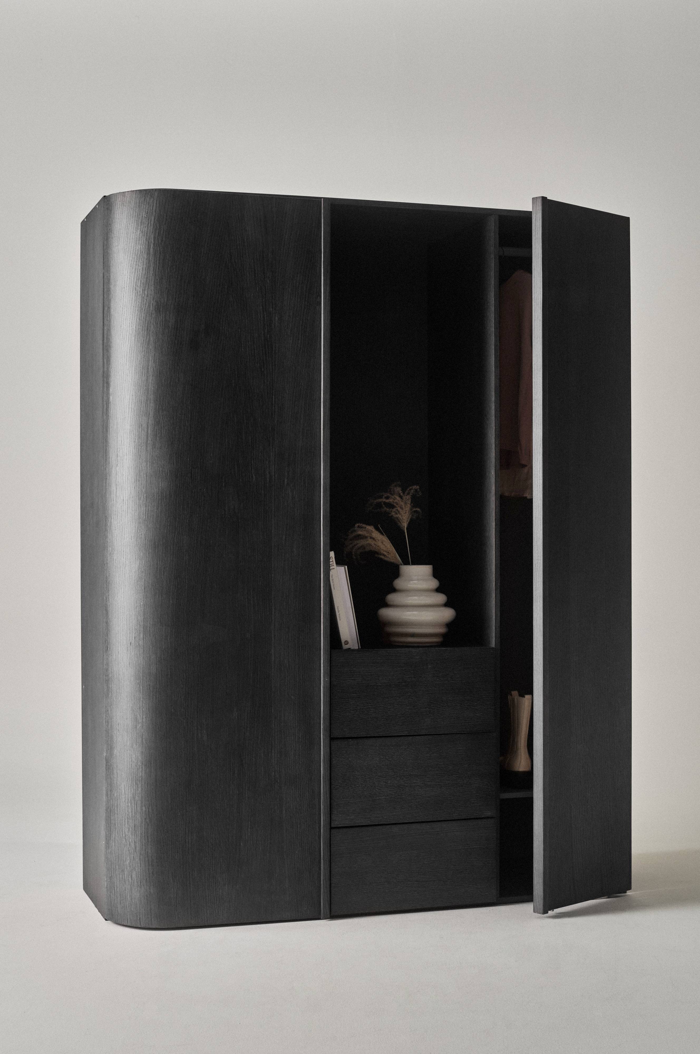 Vaatekaappi MDF-levyä, jossa tammiviilua esillä olevilla pinnoilla. BRAUX-vaatekaappi antaa näyttävän vaikutelman ja on tyylikäs säilytyskaluste, joka huokuu ylellisyyttä ja tyyliä. Etureunan pehmeästi pyöristetyt kulmat vahvistavat eleganttia ilmettä. Keskellä kolme laatikkoa ja vaatekaappi molemmilla puolilla. Laatikoiden yläpuolella oleva avoin tila antaa sinulle mahdollisuuden olla luova. Kenties sijoitat kauneimmat laukkusi sinne? Tai peilin?
