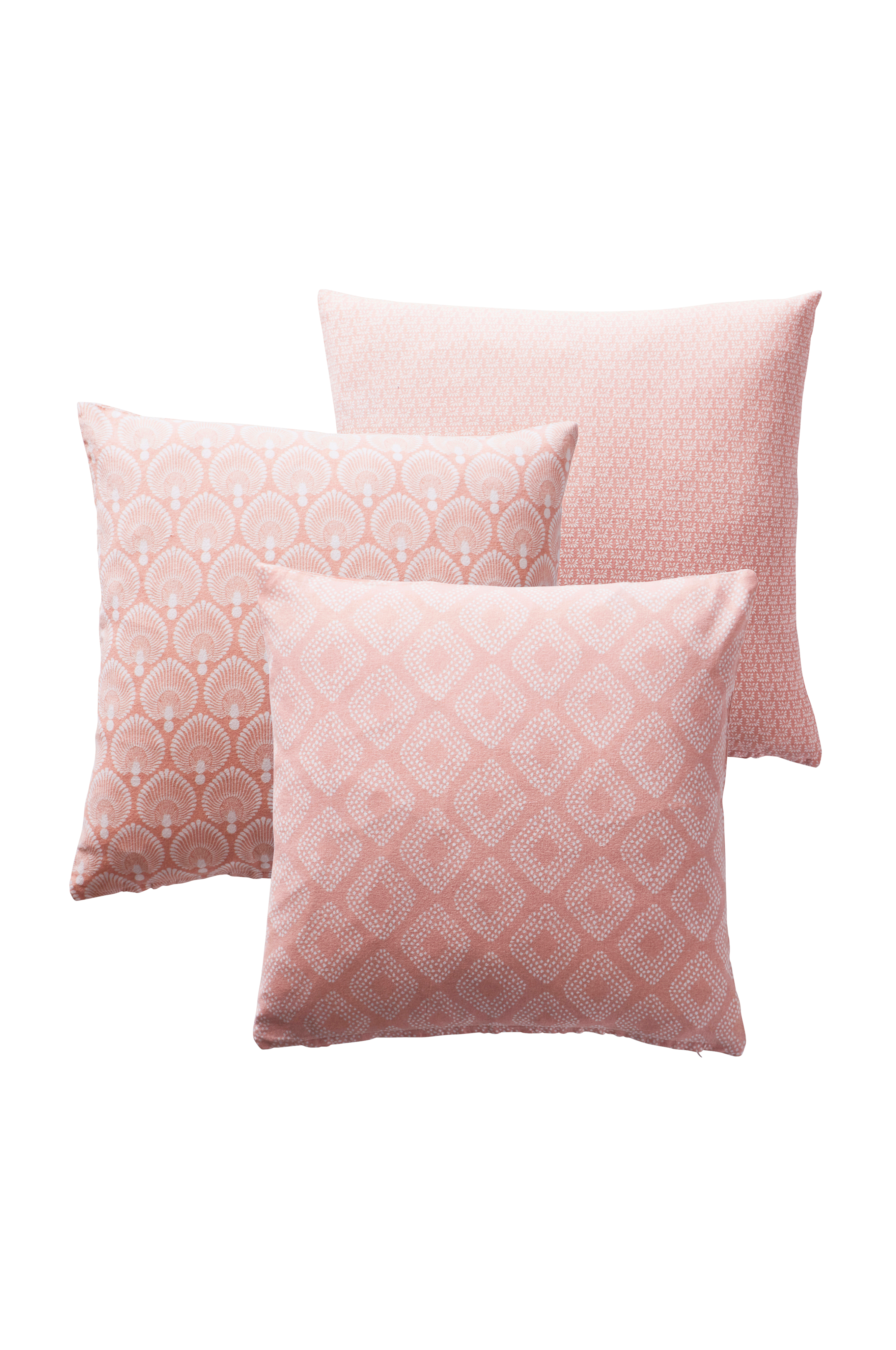 Tyynynpäälliset puuvillaa, jossa painettu kuvio. 3/pakkaus. Maalaisromanttiset ja viehättävän pienikuvioiset tyynynpäälliset sopivat moniin eri tyyleihin. Kolmessa tyynynpäällisessä on jokaisessa erilainen valkoinen kuvio värillisellä pohjalla. Alareunassa vetoketju.