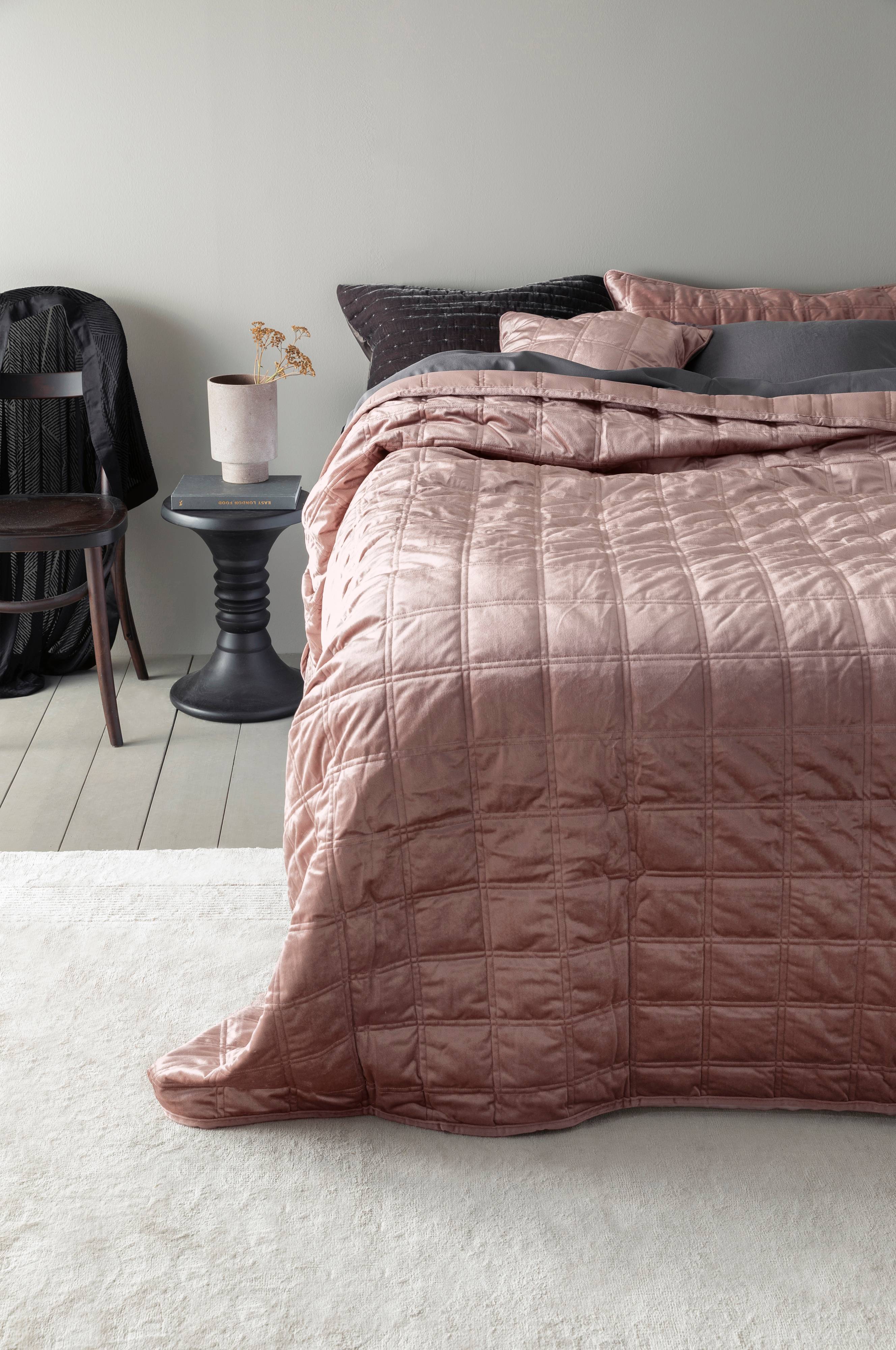 Päiväpeite kapeaan sänkyyn. Päiväpeite ruututikattua samettia, jossa ommeltu ruutukuvio ja yhteensopiva samettinen alapuoli. Tilaa tyynynpäällinen erikseen.