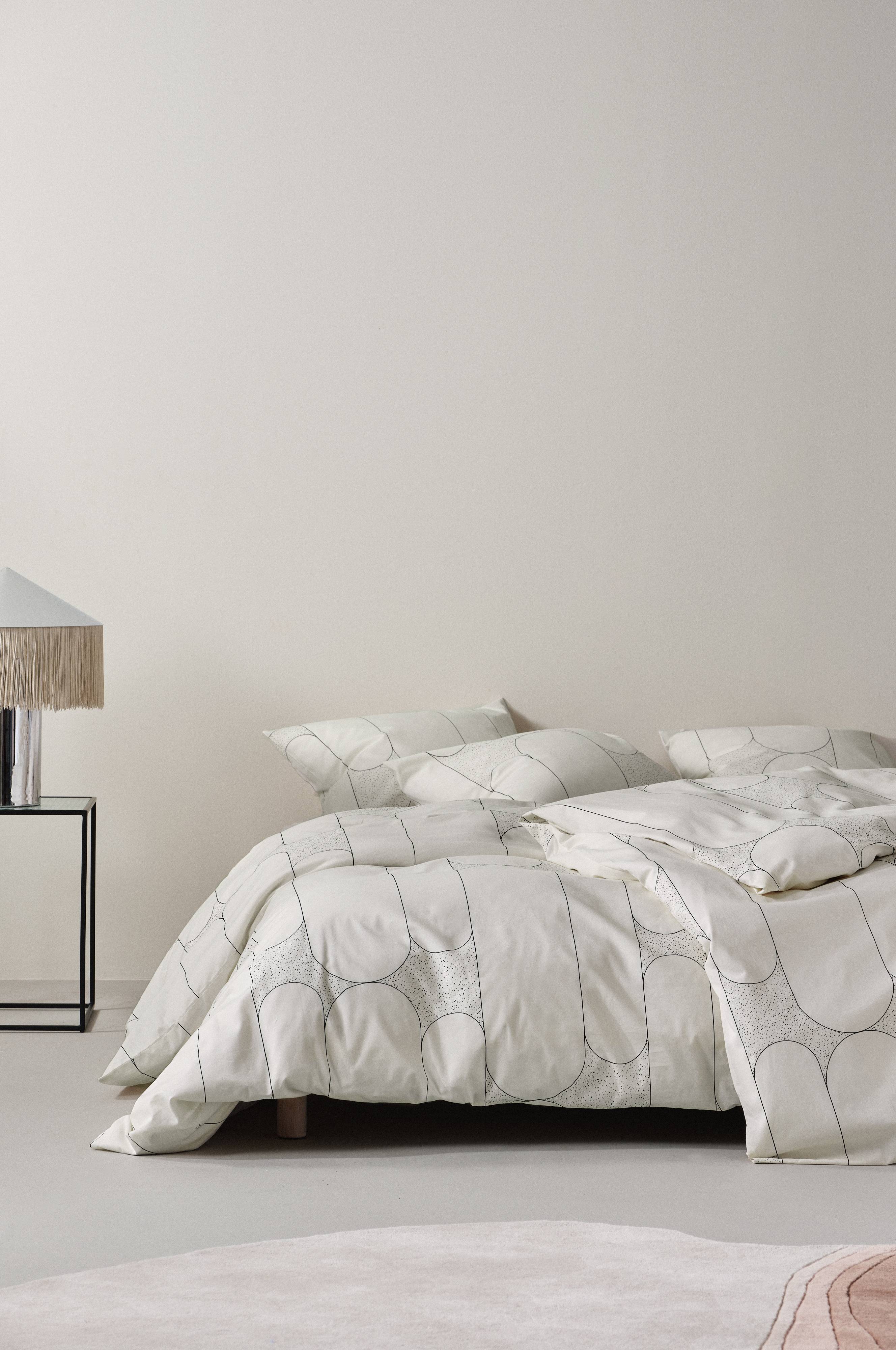 Kaksiosainen pussilakanasetti, jossa hillitysti kuvioitu puuvillainen pussilakana ja tyynyliina. Puuvillaiset vuodevaatteet tuntuvat miellyttäviltä, pehmeiltä ja aavistuksen viileiltä. Pussilakanan yläkulmissa on aukot, jotka helpottavat pussilakanan vetämistä peiton päälle. Langantiheys 144 tc. (Langantiheys kertoo lankojen lukumäärän, thread counts, neliötuuman alalla. Mitä suurempi langantiheys, sitä laadukkaampi kangas.)