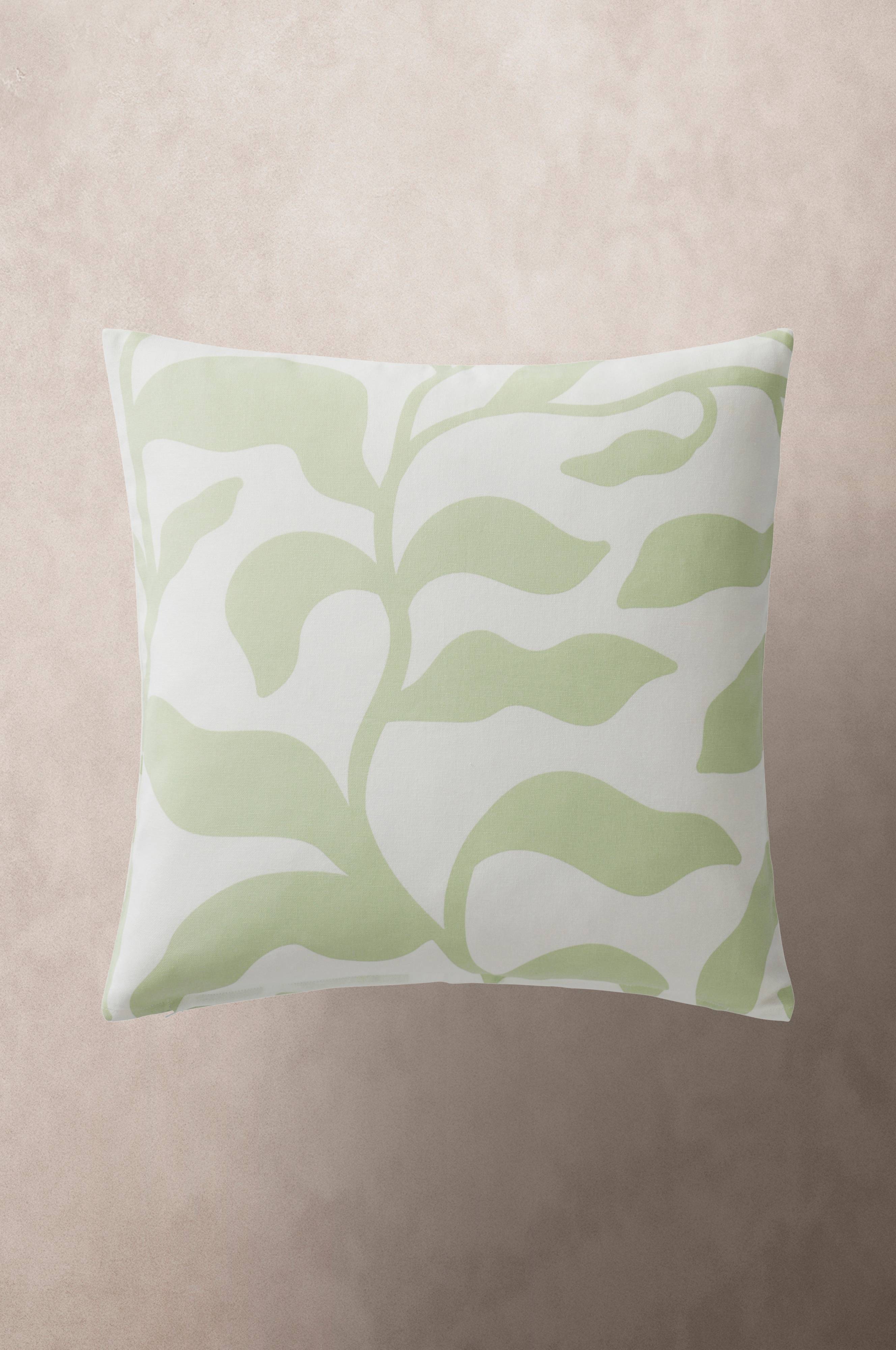 Tyynynpäällinen puuvillaista puolipanamaa. 1/pakkaus. DELLA-sarjan tuotteissa on viehättävä kesäisen värinen lehtikuvio, joka on painettu valkoiselle pohjalle. Vetoketju alareunassa. Kankaan paino 170 g/m².