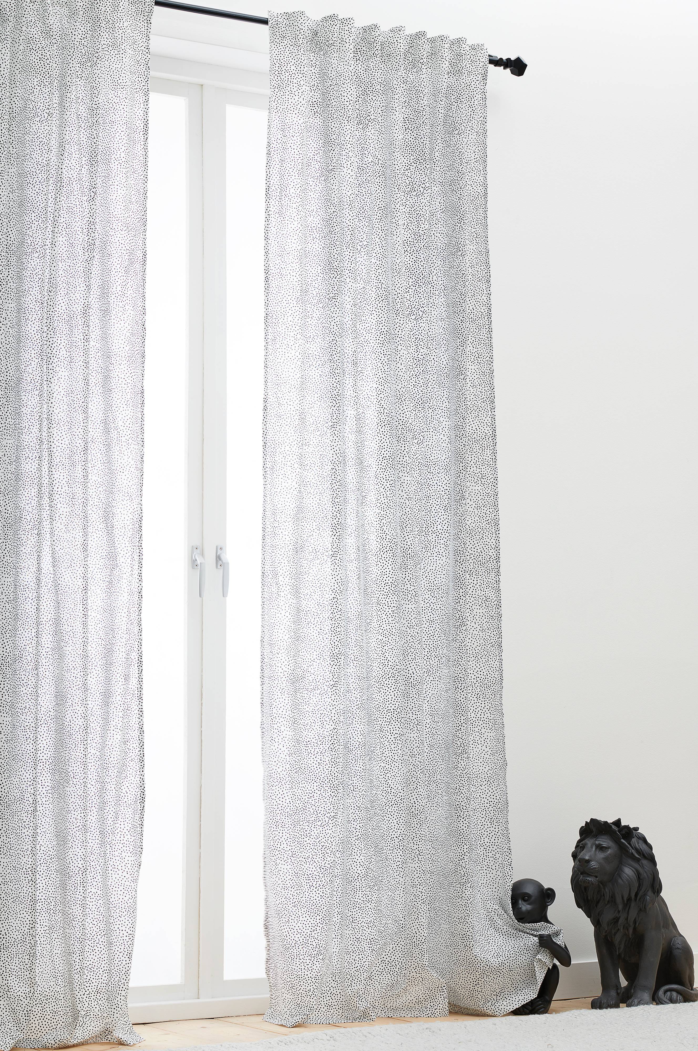 2 puuvillaverhoa, joissa päälleommeltu monitoiminauha. Verho voidaan ripustaa sormikoukkujen, kujan tai piilolenkkien avulla.