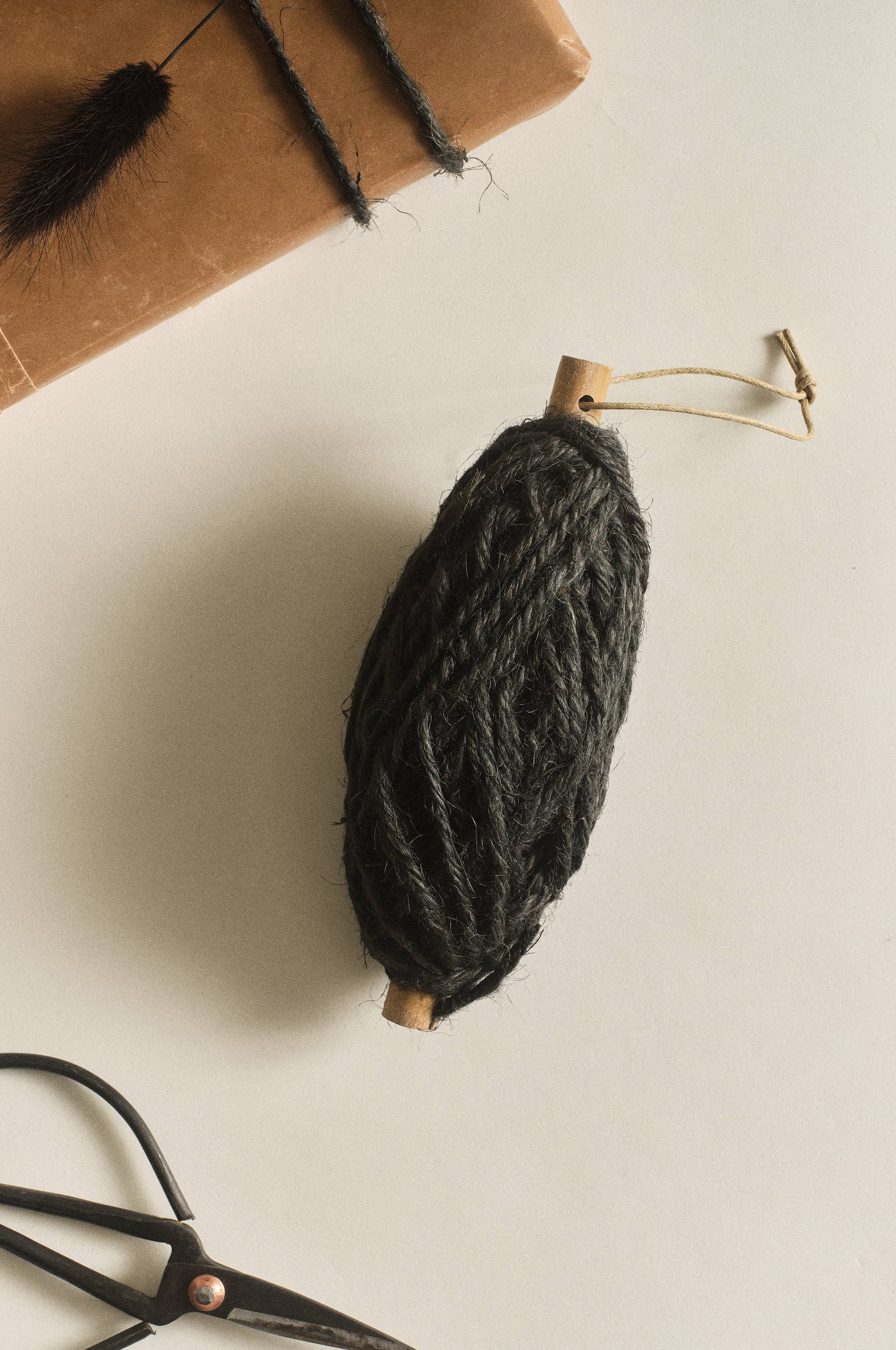 Kierretty juuttinyöri, jolla on kiva koristella lahjat ja joululahjat sekä kiinnittää pieni kortti kukkakimppuun tai huonekasviin.