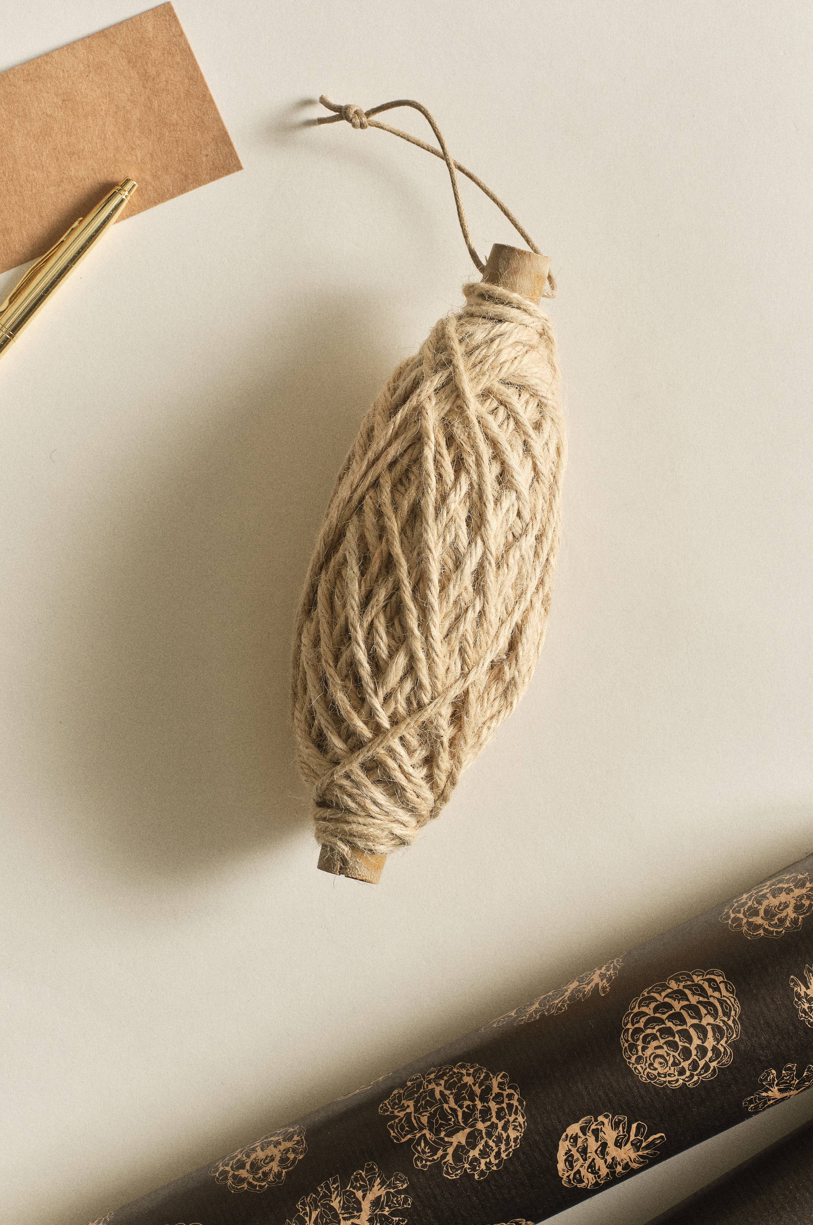 Kierretty juuttinyöri, jolla on kiva koristella lahjat ja joululahjat sekä kiinnittää pieni kortti kukkakimppuun tai huonekasviin.
