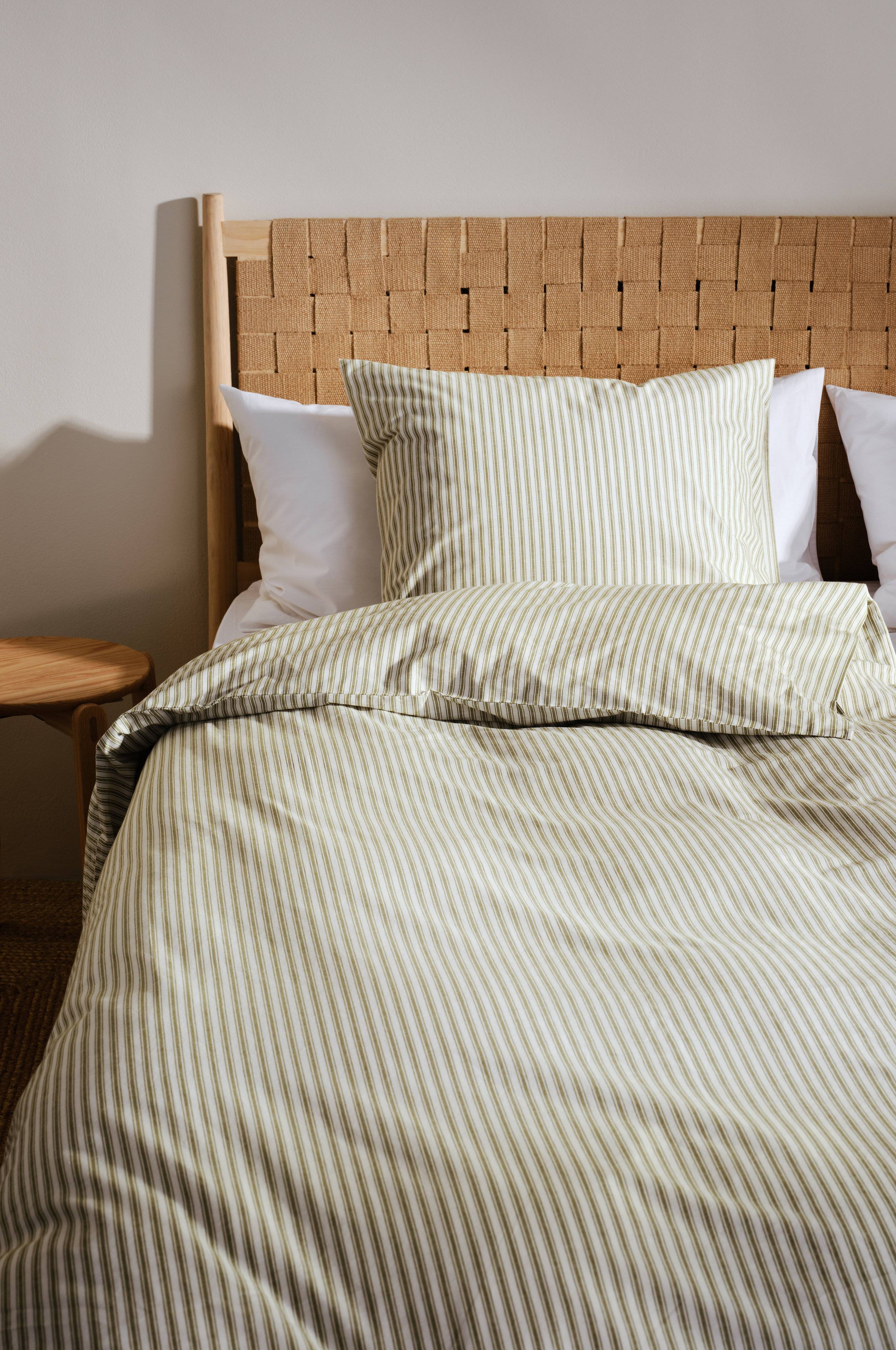 ESSA-sängynpeti tuo makuuhuoneeseesi ripauksen skandinaavista designia klassisella lankavärjätyllä raidallisella kuviollaan. Ekologisesta puuvillasta valmistettu setti sisältää tyynynpäällisen ja peiton, jotka tarjoavat mukavuutta ja tyyliä. Osana ESSA-perhettä se sopii vaivattomasti yhteen yhteensopivien tuotteiden kanssa, mikä luo yhtenäisen ja kutsuvan ilmeen. Täydellinen niille, jotka arvostavat hillittyä eleganssia ja laatua kodin sisustuksessa.