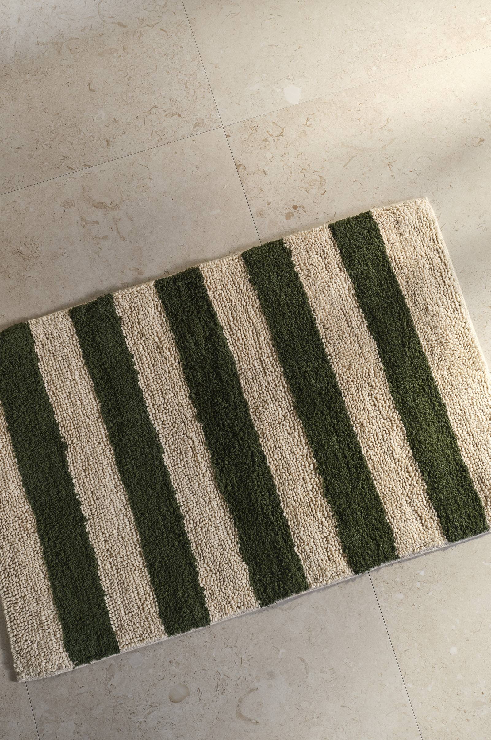 FARHULT-kylpyhuonematto antaa tyylikkään ja mukavan kosketuksen kylpyhuoneesi lattialle. Sen pehmeä kangas ja raidallinen muotoilu tarjoavat rauhoittavan kokemuksen jalkojen alla kylvyn tai suihkun jälkeen. Tämä kylpymatto on suunniteltu imemään kosteutta tehokkaasti, joten se pitää tilasi kuivana ja kutsuvana. Nauti päivittäisestä mukavuudesta FARHULTin harkitun rakenteen ja muotoilun ansiosta.