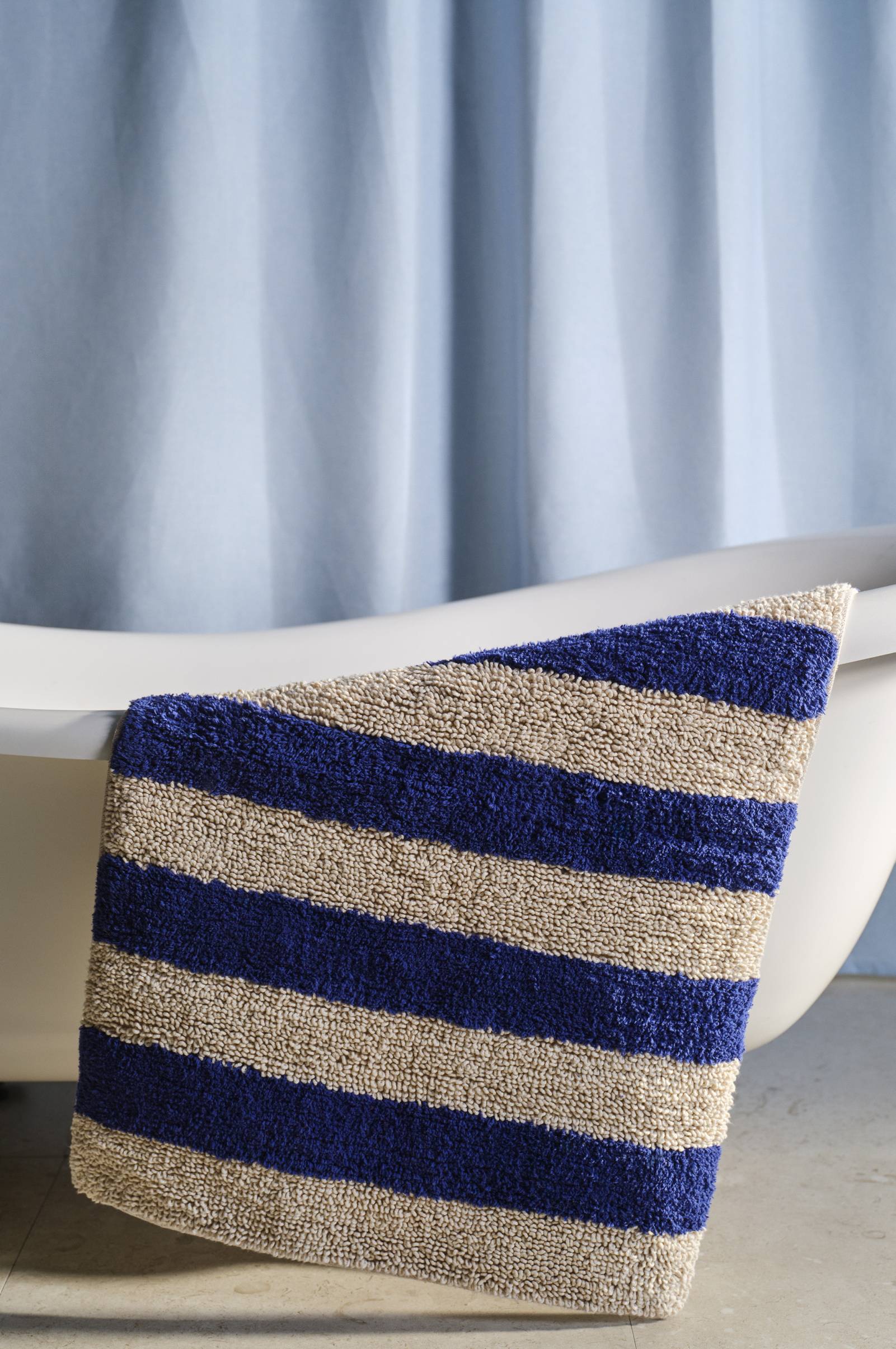 FARHULT-kylpyhuonematto antaa tyylikkään ja mukavan kosketuksen kylpyhuoneesi lattialle. Sen pehmeä kangas ja raidallinen muotoilu tarjoavat rauhoittavan kokemuksen jalkojen alla kylvyn tai suihkun jälkeen. Tämä kylpymatto on suunniteltu imemään kosteutta tehokkaasti, joten se pitää tilasi kuivana ja kutsuvana. Nauti päivittäisestä mukavuudesta FARHULTin harkitun rakenteen ja muotoilun ansiosta.