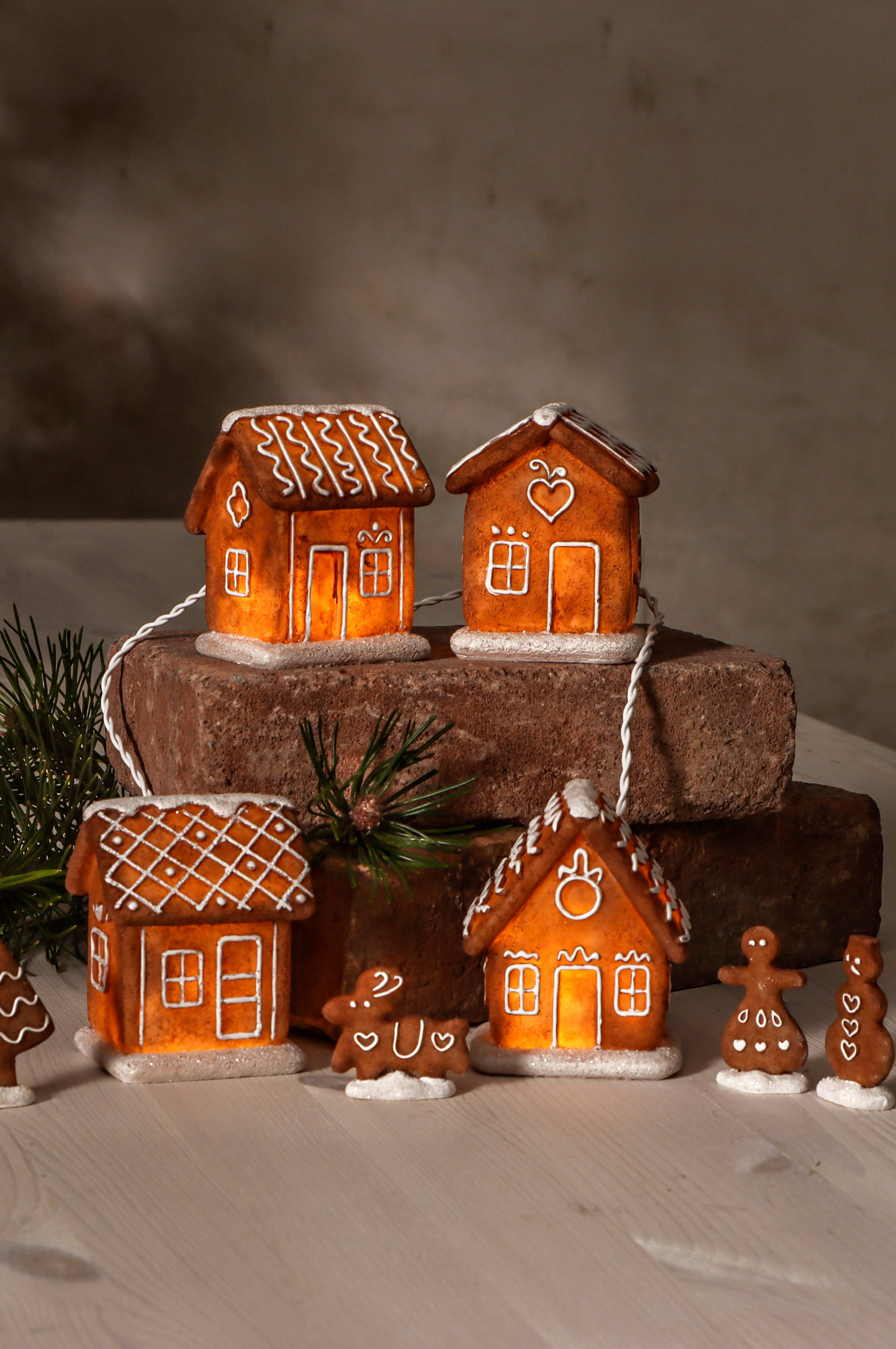 Kahdeksan osainen koristesetti on täydellinen joulukoriste. Setissä on neljä pientä piparkakkutaloa ja neljä piparkakkuhahmoa. Talot loistavat kauniisti, kun tuote on päällä. Tuote toimii paristoilla. Aseta pöydälle tai hyllylle luomaan miellyttävää joulutunnelmaa.