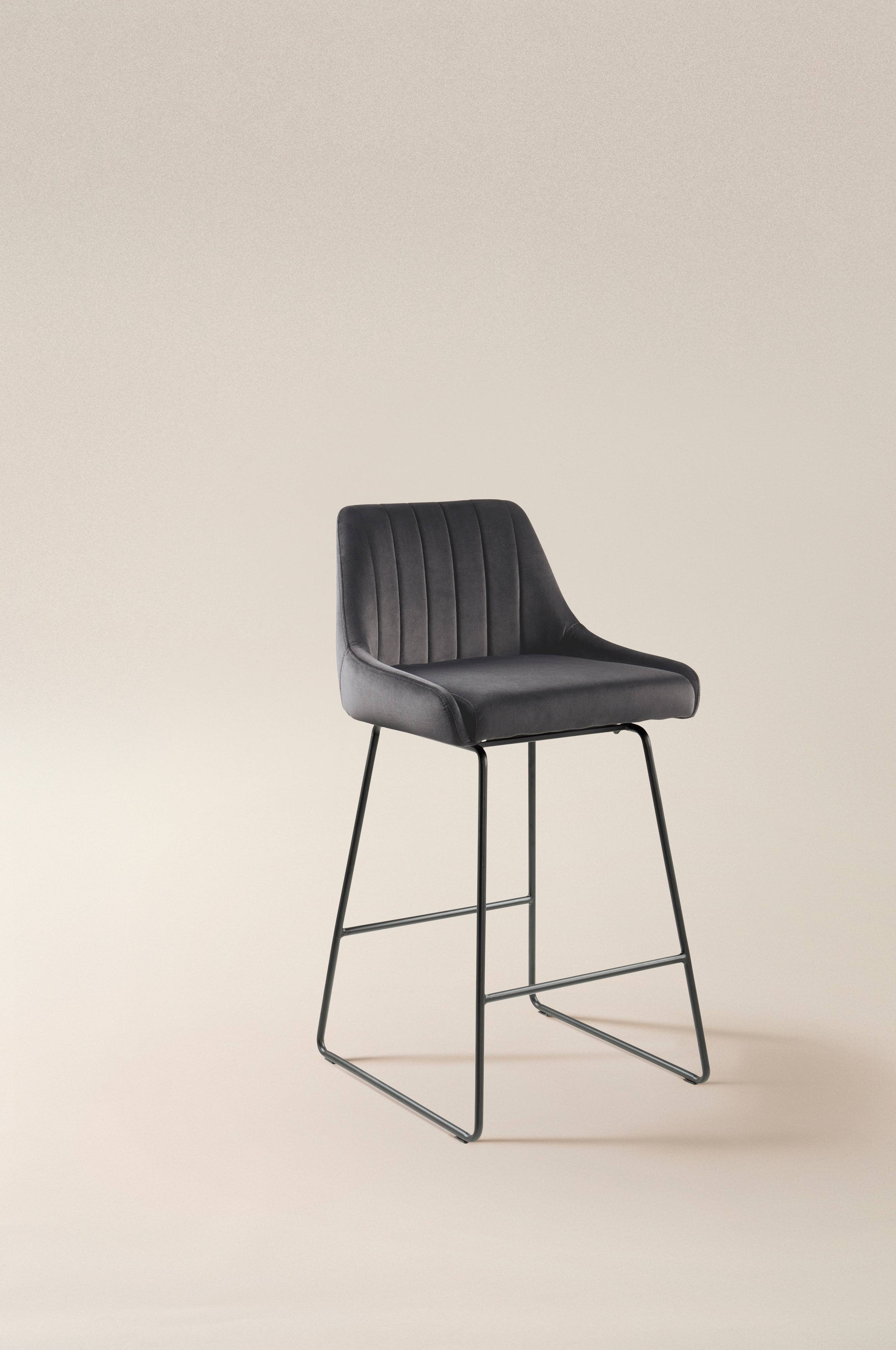 Baarituoli samettia. Pehmustetussa istuintyynyssä polyesteripäällinen. Tyylikkäästi muotoillut jalat terästä. HOLLIE on tyylikäs ja kätevä baarituoli, jossa on pehmeä vaahtomuovitäyte. Tuolissa on mukava istua. Kankaan Martindale-arvo on 28 000. Osittain koottava. Kokoamisohje mukana.