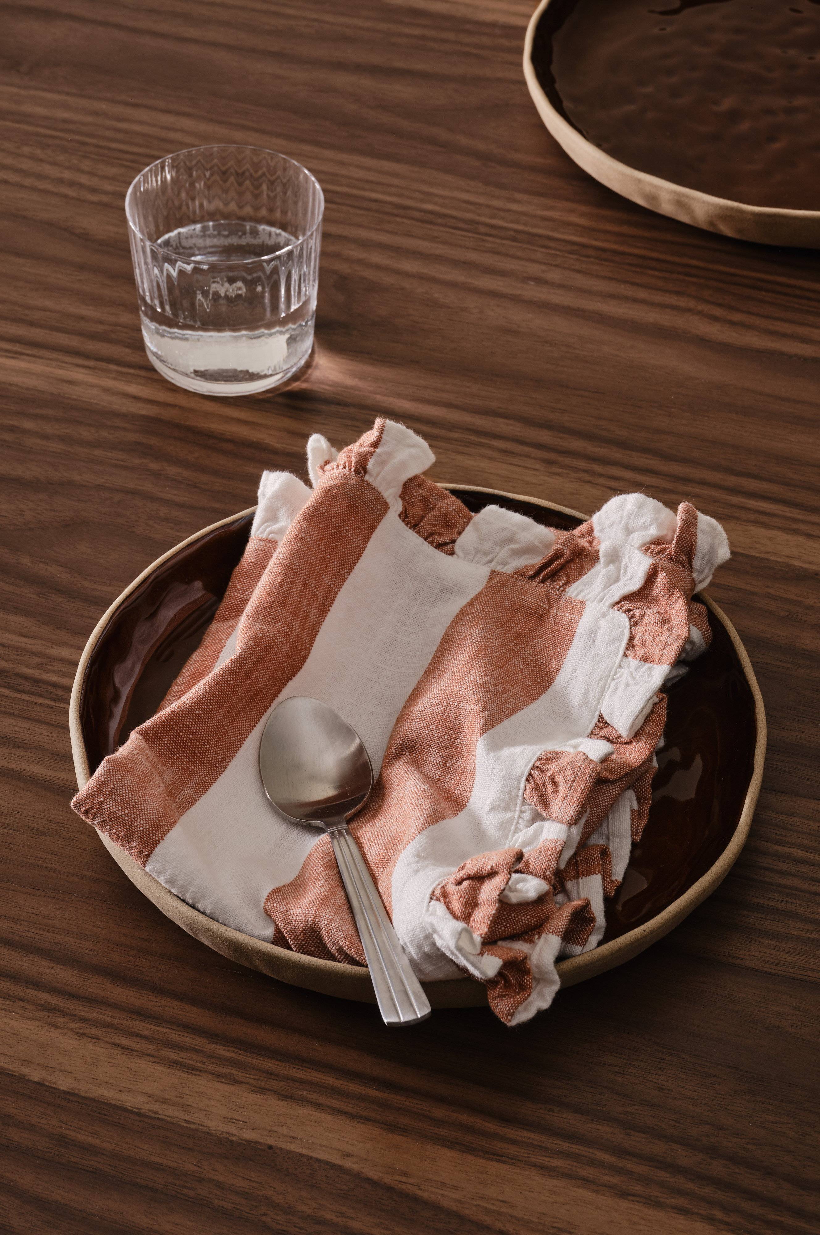 IRIS-lautasliinojen sarjassa on viehättävä röyhelö reunoilla ja ajaton lankavärjätty raitakuvio, joka antaa ripauksen vintage-viehätystä mihin tahansa ympäristöön. Pehmeästä puuvillasta valmistetut lautasliinat yhdistävät tyylin ja mukavuuden. Täydellinen viimeistely niille, jotka haluavat tuoda ruokailukokemukseensa ripaus nostalgiaa.