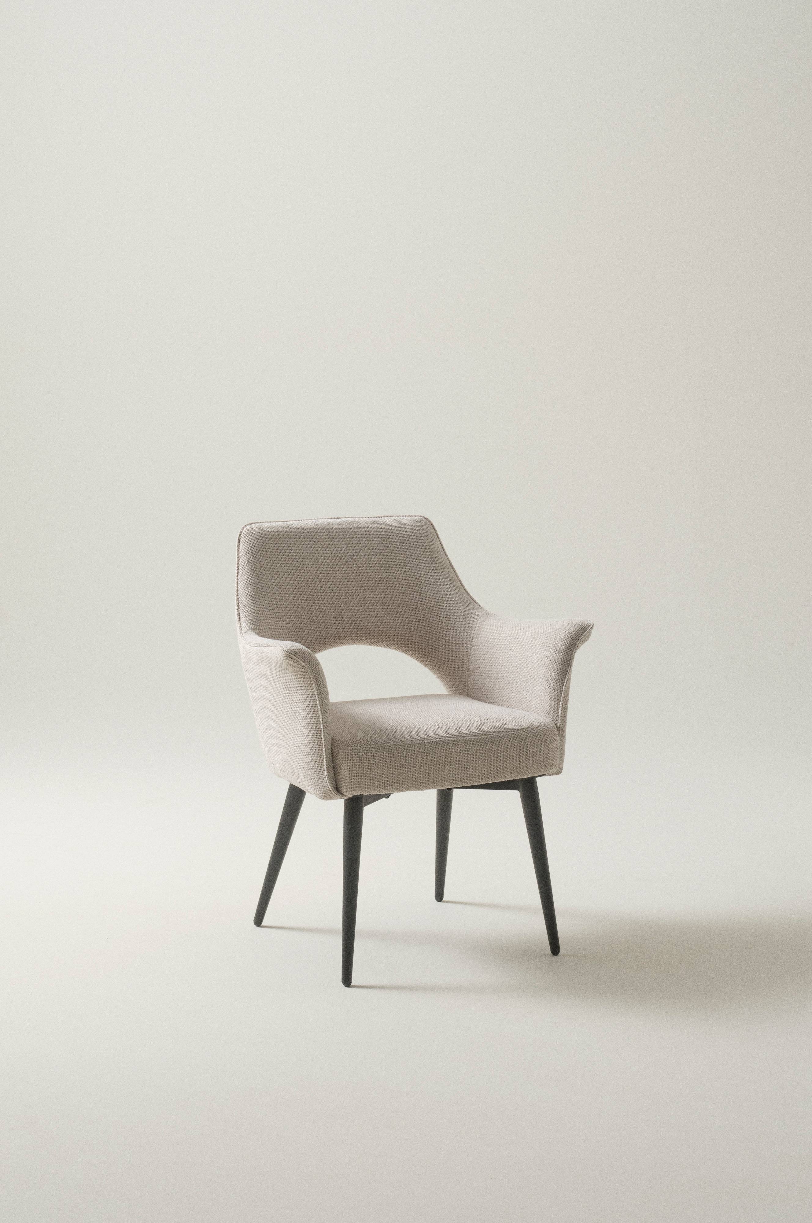 Käsinojallinen tuoli, jonka pehmustetussa istuintyynyssä polyesteripäällinen. Tyylikkäästi muotoillut jalat terästä. JESOLO on tyylikäs käsinojallinen tuoli, jossa on pehmeä vaahtomuovitäyte. Tuolissa on mukava istua keittiön pöydän ympärillä. Päällinen on paksuhkoa ja kevyesti meleerattua kangasta. Kestävän kankaan Martindale-arvo on 50 000. Päällistä ei voi irrottaa. Osittain koottava. Kokoamisohje mukana.