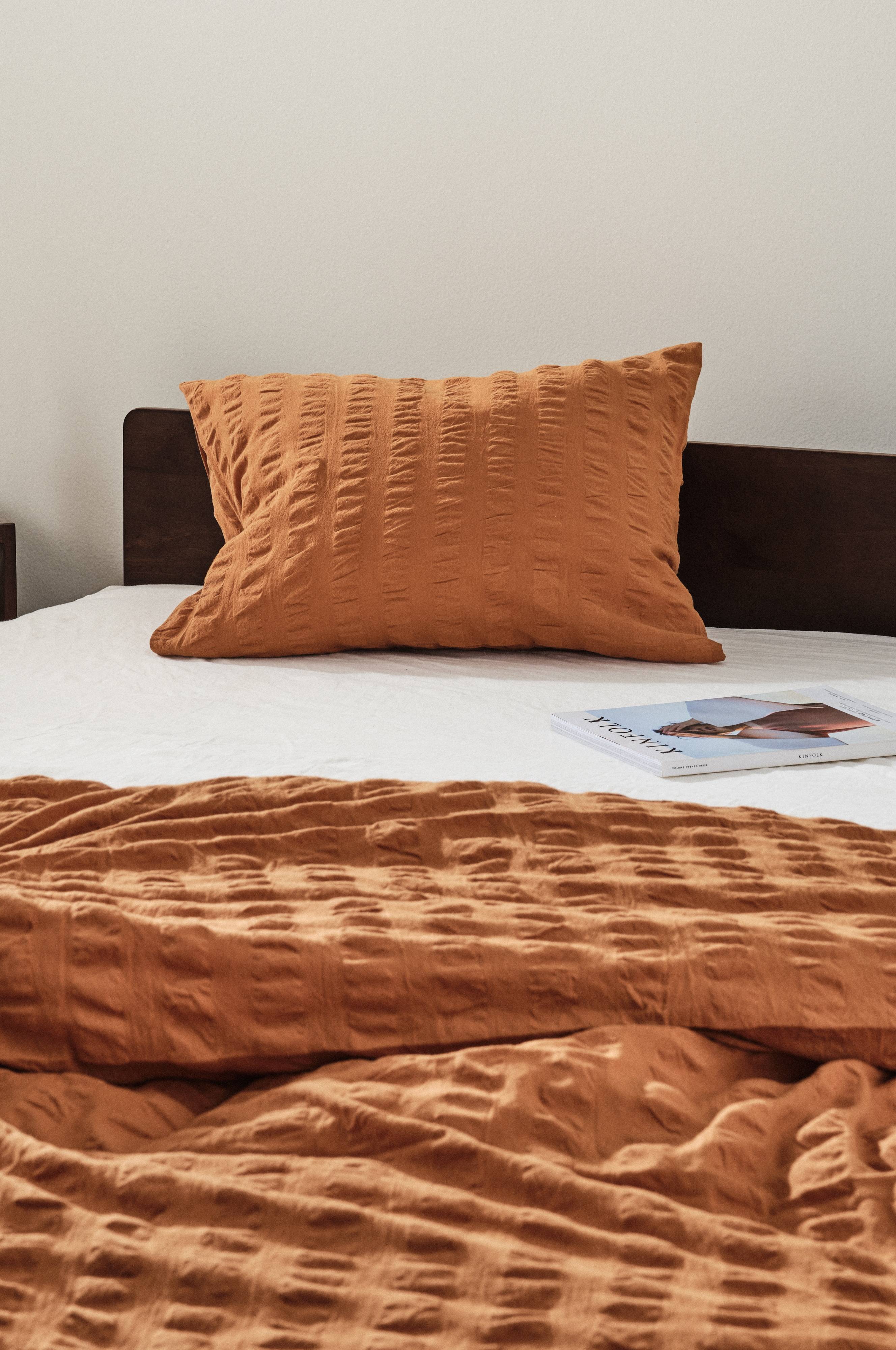 Tyynyliina miellyttävää kreppikangasta sertifioidusta ekologisesta puuvillasta. Kreppi on ilmava materiaali, ja kuplamainen kangas tuntuu viileältä ja on miellyttävän hengittävää. KIMMI-sarja on yksivärinen ja samalla raidallinen. Joka toinen raita on sileää kangasta ja joka toinen kreppikangasta. Kangas on lankavärjätty ja pesty pehmeäksi. Langantiheys 120 tc. (Langantiheys kertoo lankojen lukumäärän, thread counts, neliötuuman alalla. Mitä suurempi langantiheys, sitä laadukkaampi kangas.)