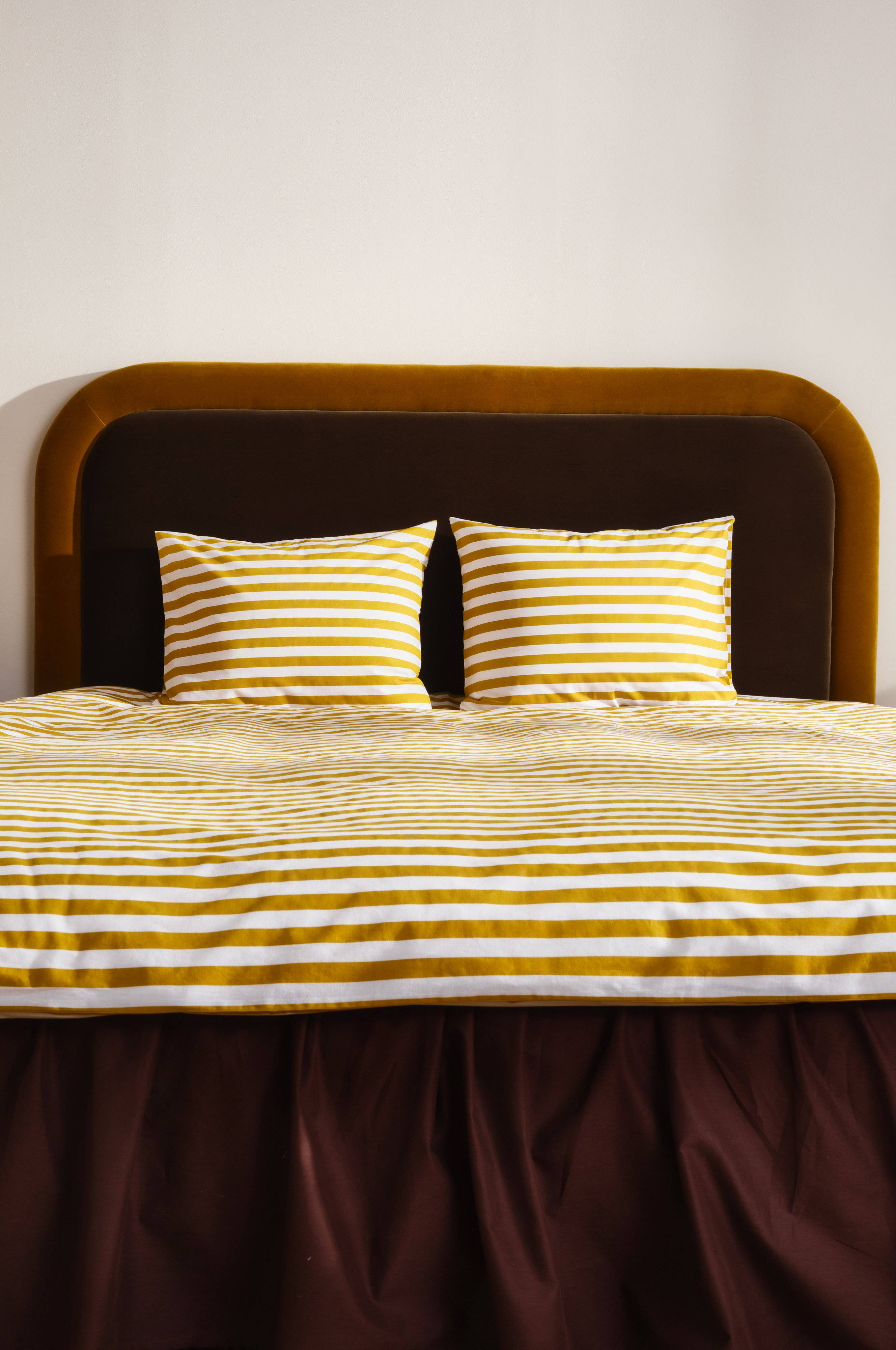 Raidallinen kolmiosainen pussilakanasetti, yksi erittäin leveä pussilakana ja kaksi puuvillaista tyynyliinaa. Poikittainen raita on painettu raikkailla, kesäisillä väreillä tyynyliinojen ja pussilakanan molemmille puolille. Puuvilla on pehmeää ja miellyttävää laatua, joka tuntuu viileältä ihoa vasten.