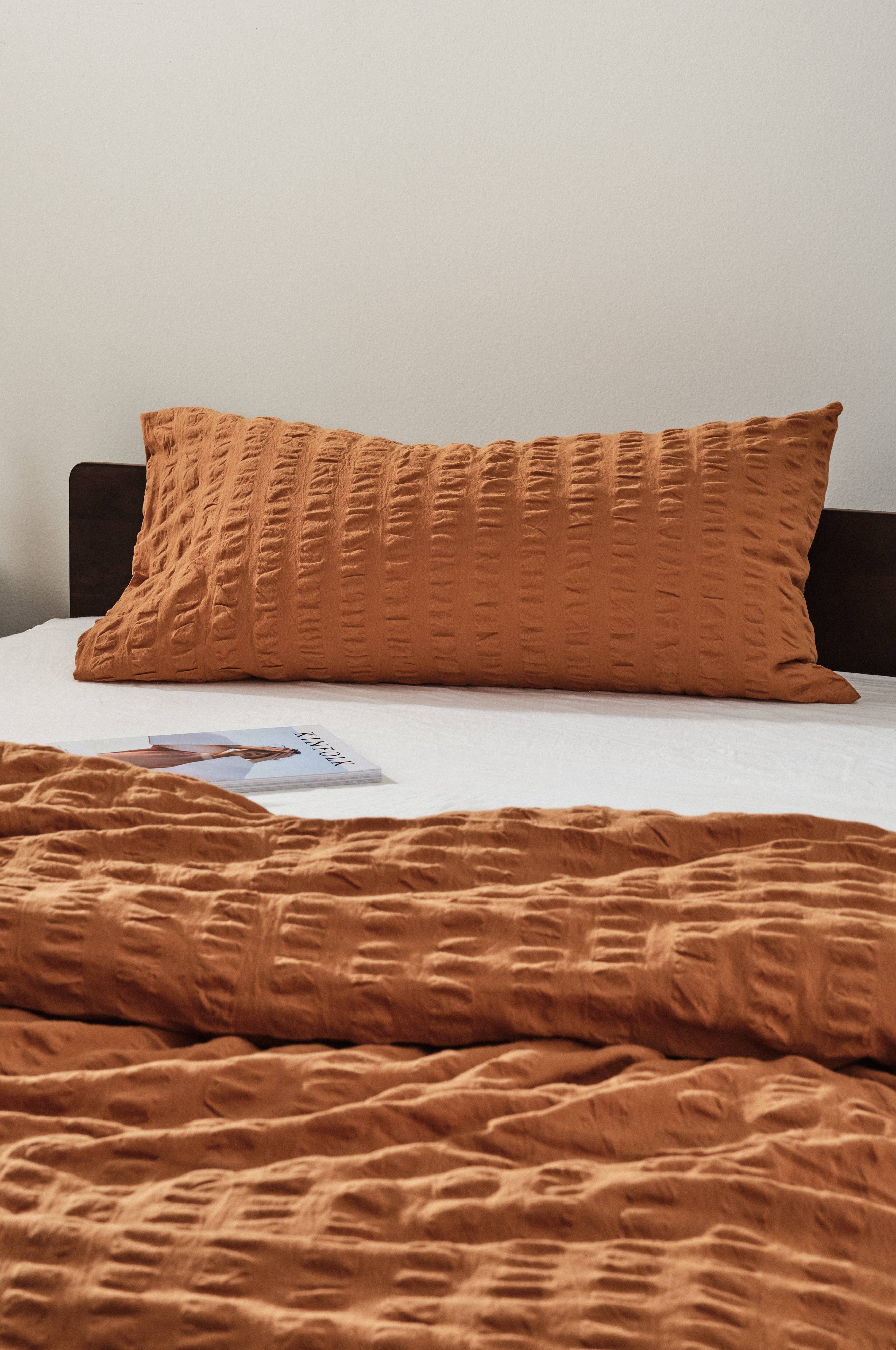 Tyynyliina miellyttävää kreppikangasta sertifioidusta ekologisesta puuvillasta. Kreppi on ilmava materiaali, ja kuplamainen kangas tuntuu viileältä ja on miellyttävän hengittävää. KIMMI-sarja on yksivärinen ja samalla raidallinen. Joka toinen raita on sileää kangasta ja joka toinen kreppikangasta. Kangas on lankavärjätty ja pesty pehmeäksi. Langantiheys 120 tc. (Langantiheys kertoo lankojen lukumäärän, thread counts, neliötuuman alalla. Mitä suurempi langantiheys, sitä laadukkaampi kangas.)