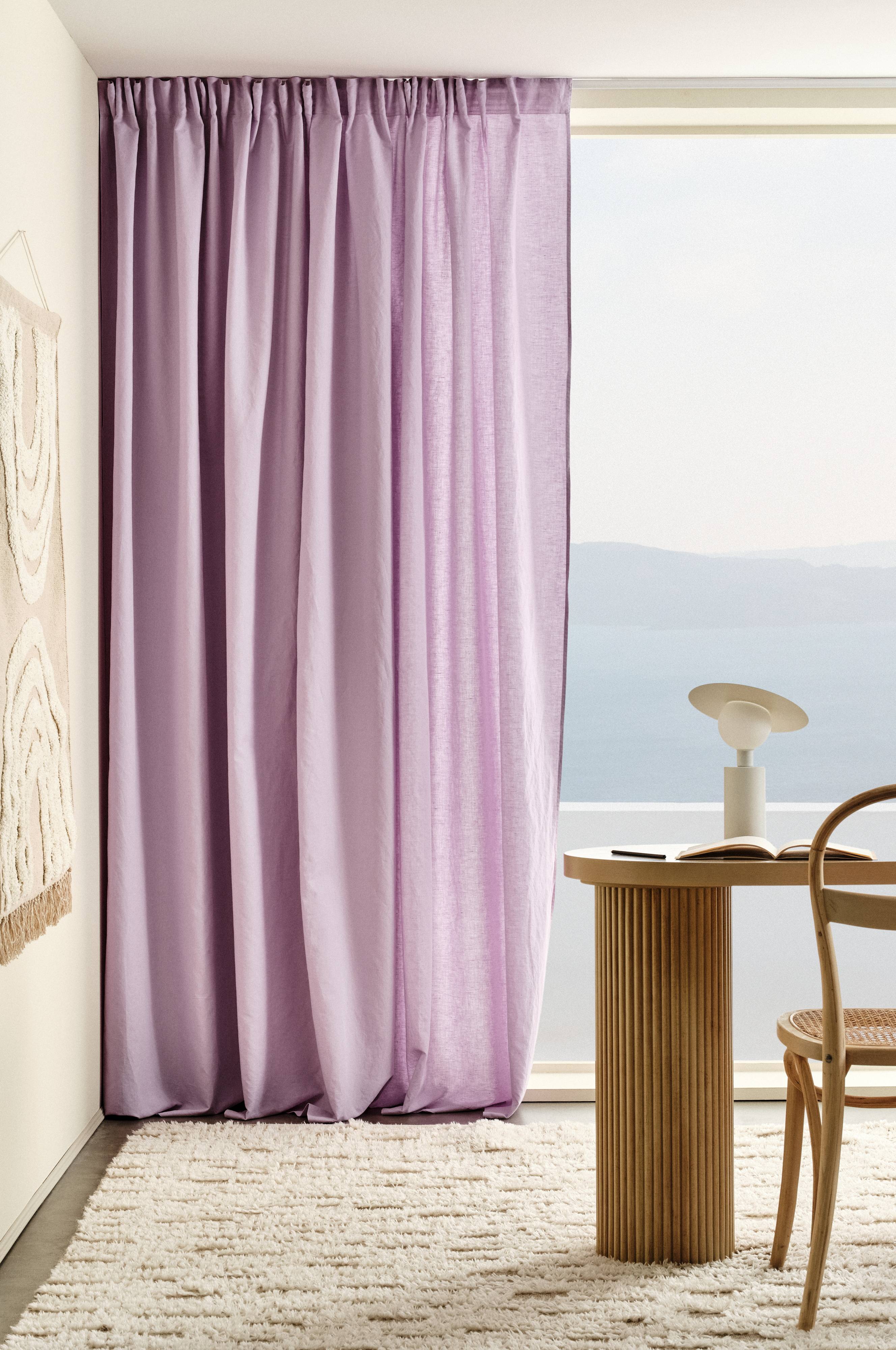 Hienopellavasekoitteisen verhon pituus, jossa pellavaa on sekoitettu puuvillan kanssa. Puuvillan ja pellavan sekoitus tarjoaa helppohoitoisen laadun, jossa on sekä puuvillan että pellavan edut. Pellava tuo hieman kiinteämmän rakenteen, ja yhdessä pehmeän puuvillan kanssa kankaasta tulee joustava ja se laskeutuu kauniisti. Yksivärisiä kankaita on helppo sovittaa yhteen, ja ne sopivat yhtä hyvin samanväristen yksiväristen kuin kuviollisten tekstiilien kanssa.
