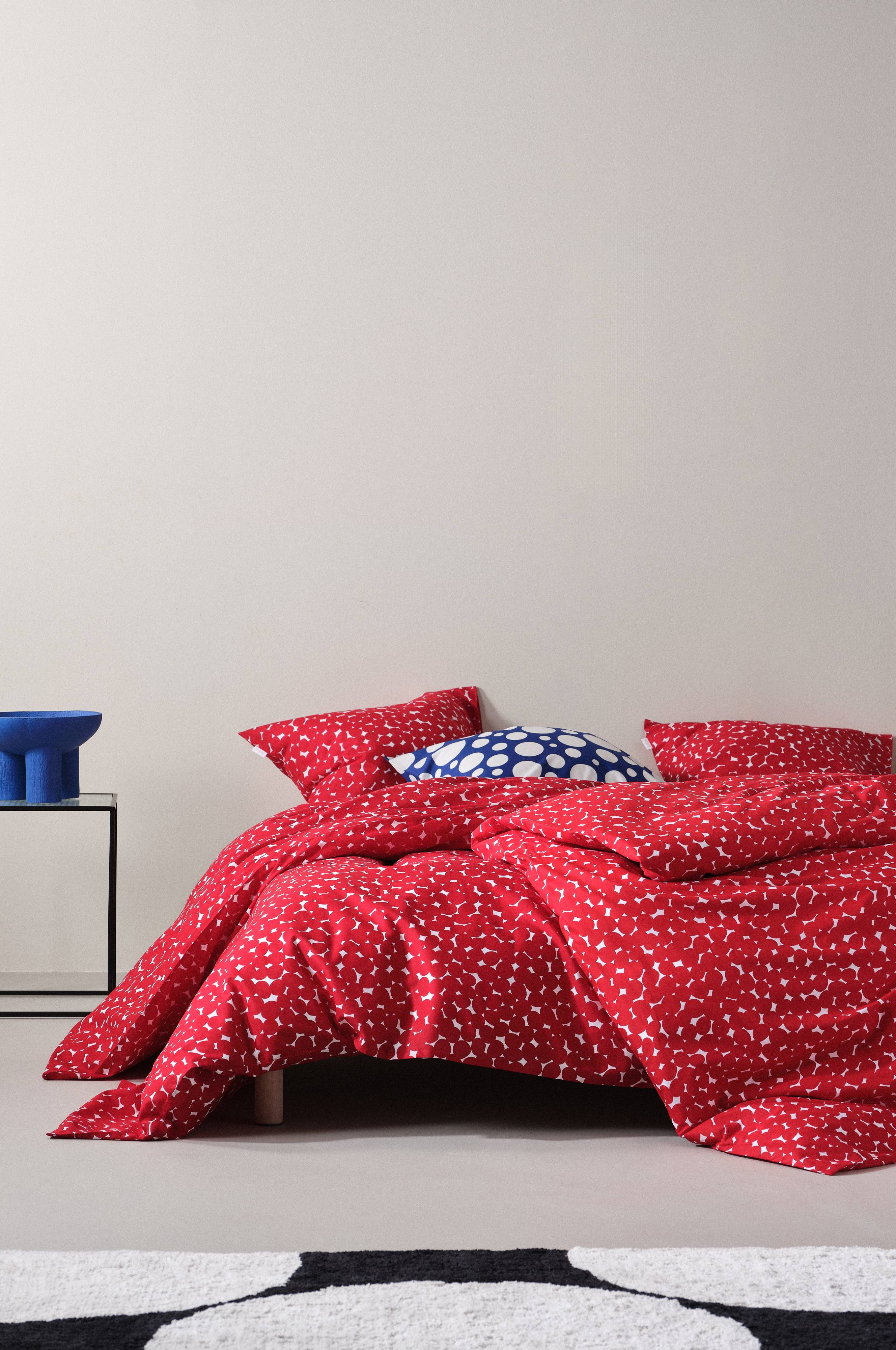 Kaksiosainen pussilakanasetti, jossa pussilakana ja tyynyliina miellyttävää puuvillaa. Tiheä kuvio koostuu painetuista pilkuista. Puuvilla on viileä ja raikas materiaali, joka tuntuu miellyttävältä ihoa vasten. Pussilakanan yläkulmissa on aukot, jotka helpottavat pussilakanan vetämistä peiton päälle. Langantiheys 144 tc. (Langantiheys kertoo lankojen lukumäärän, thread counts, neliötuuman alalla. Mitä suurempi langantiheys, sitä laadukkaampi kangas.)