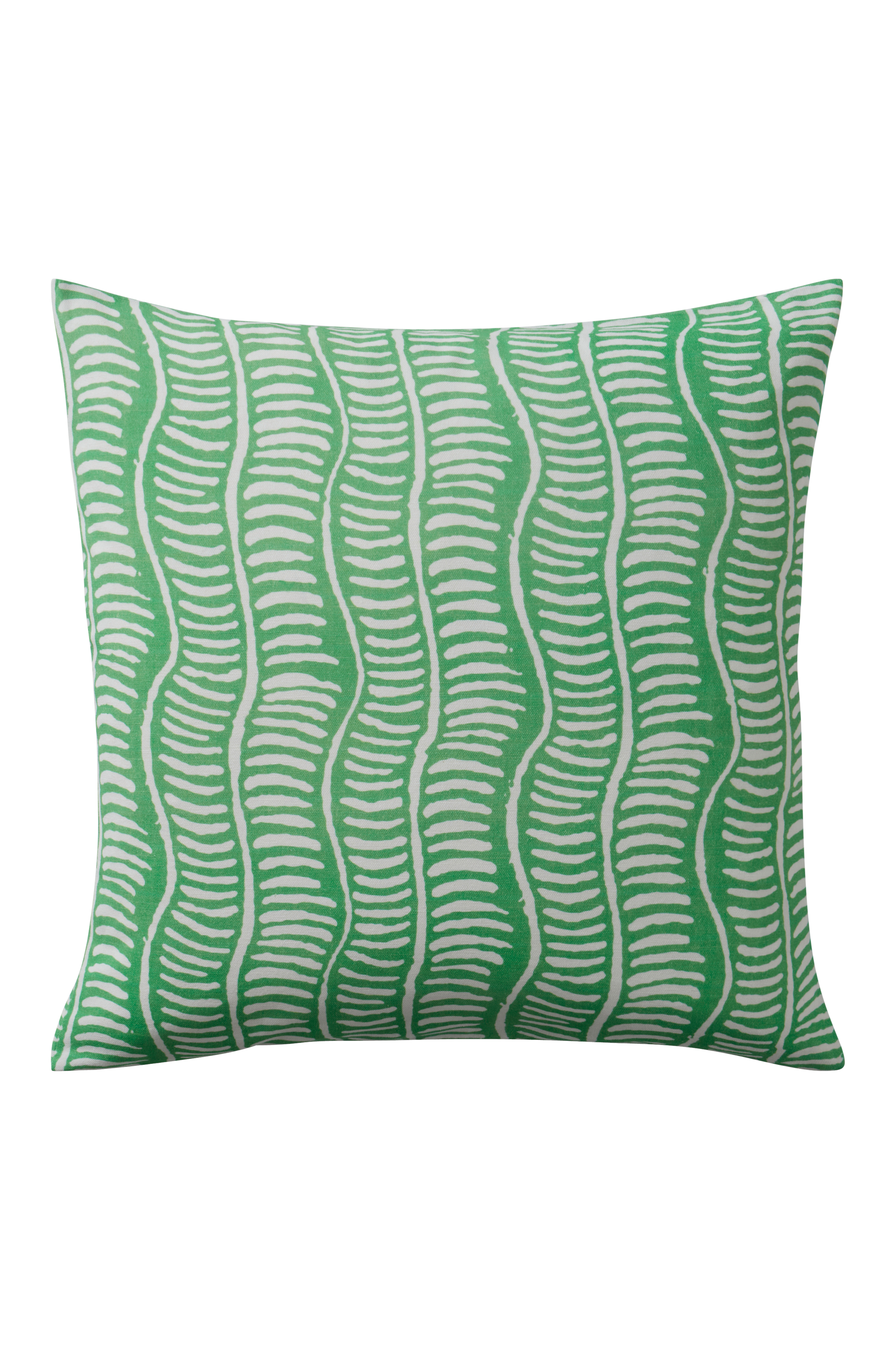 Tyynynpäällinen puuvillakangasta, jossa painettu aaltomainen raitakuvio. 1/pakkaus. Vetoketju alareunassa.