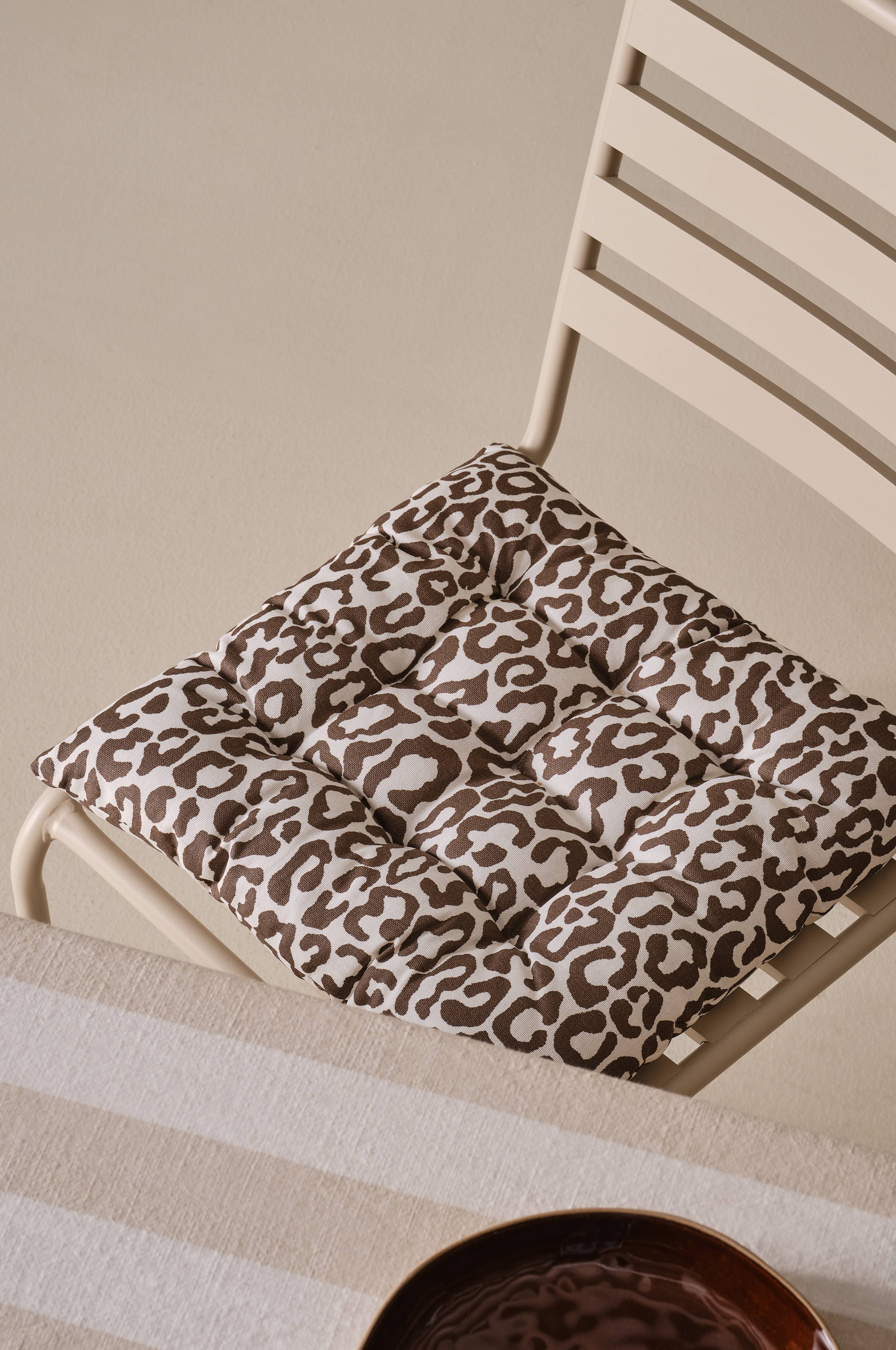 Istuintyynyt, joissa on moderni painettu leopardikuvio, tuovat ripauksen villiä eleganssia kodin sisustukseen. Vettä hylkivä materiaali takaa, että tämä tyylikäs lisävaruste on monipuolinen sekä sisä- että ulkokäyttöön, mikä lisää nykyaikaista charmia ja mukavuutta mihin tahansa istuinalueeseen.