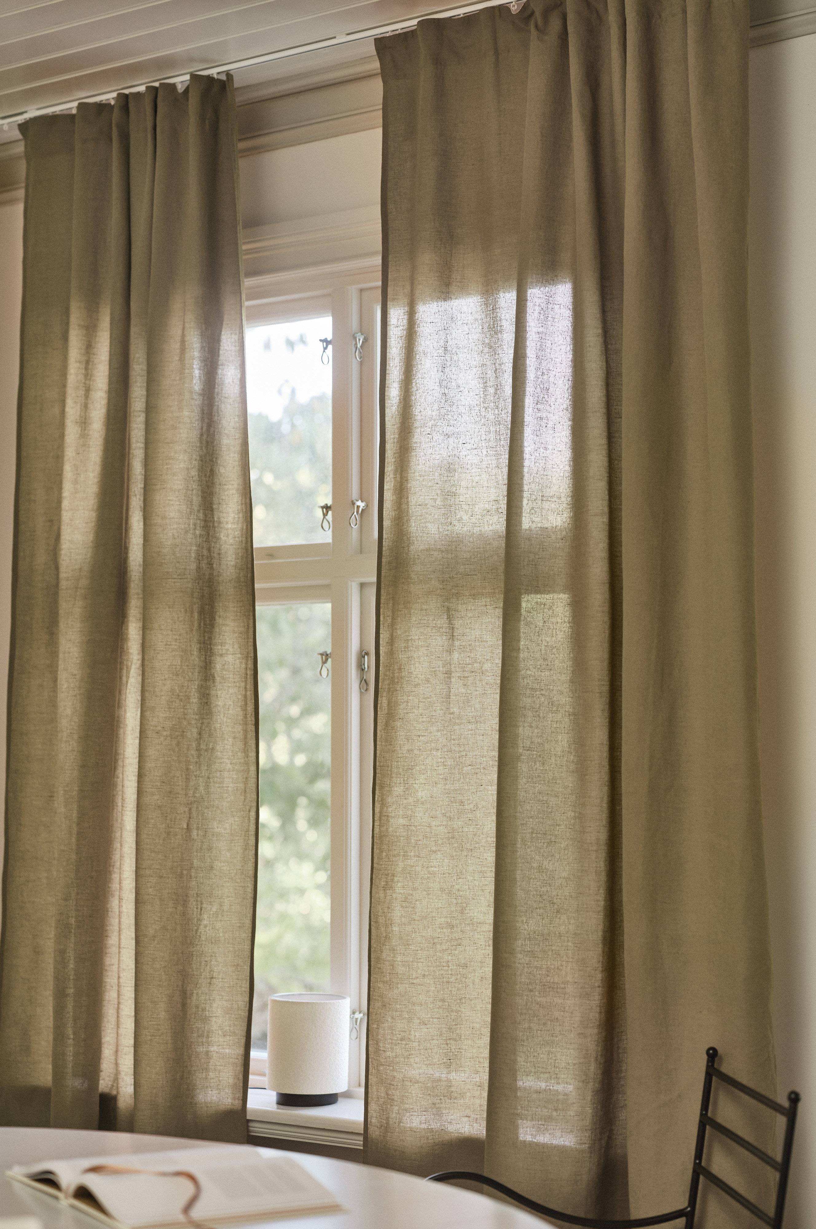 2-pack verhon pituus LINA tuo ikkunaan maalaismaista eleganssia pellavan ja puuvillan hienolla sekoituksella. Lehtikangas korostaa sen luonnollista kauneutta ja tarjoaa pehmeän ja notkean rakenteen. Ajan myötä pellavan luonne syvenee. Sen rikas väripaletti täydentää erilaisia sisustustyylejä, mikä tekee siitä monipuolisen valinnan. Lisää ripaus ajatonta tyyliä kodin sisustukseen.