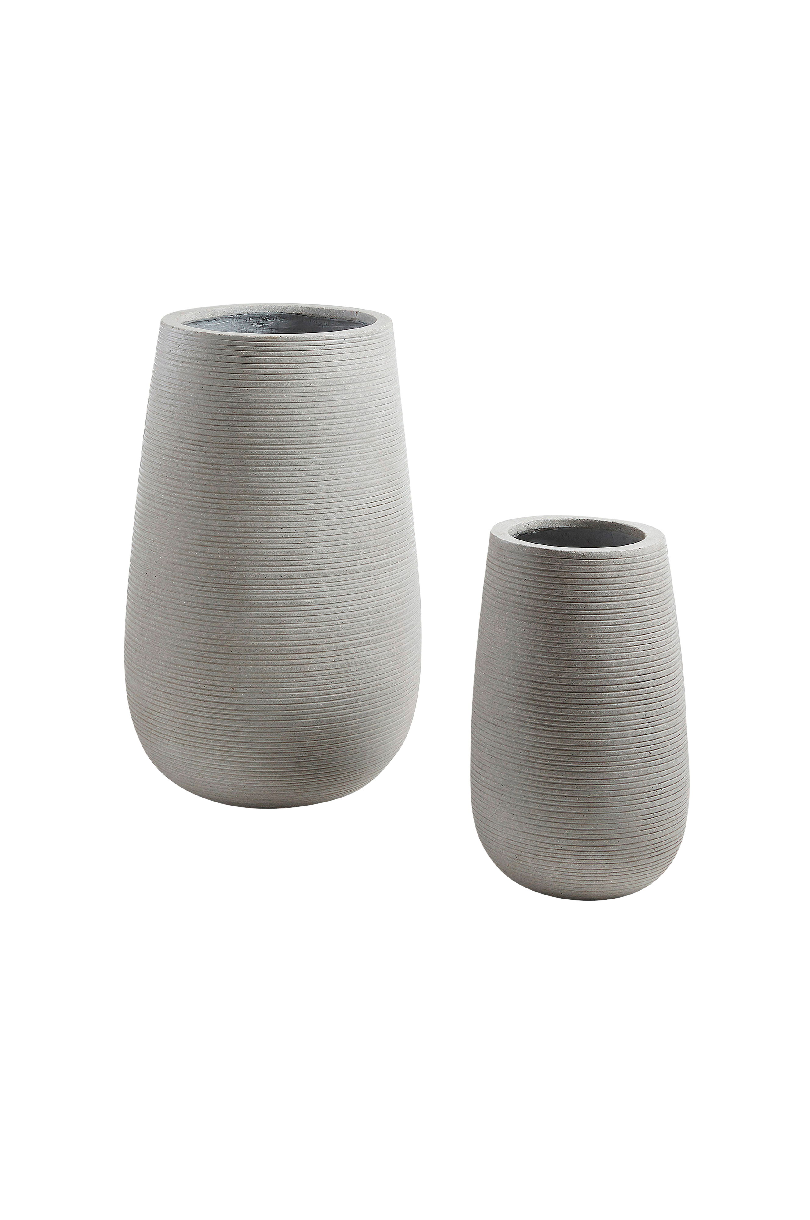 Maljakko sementtiä. Pakkauksessa kaksi maljakkoa. Sisä- ja ulkokäyttöön.
