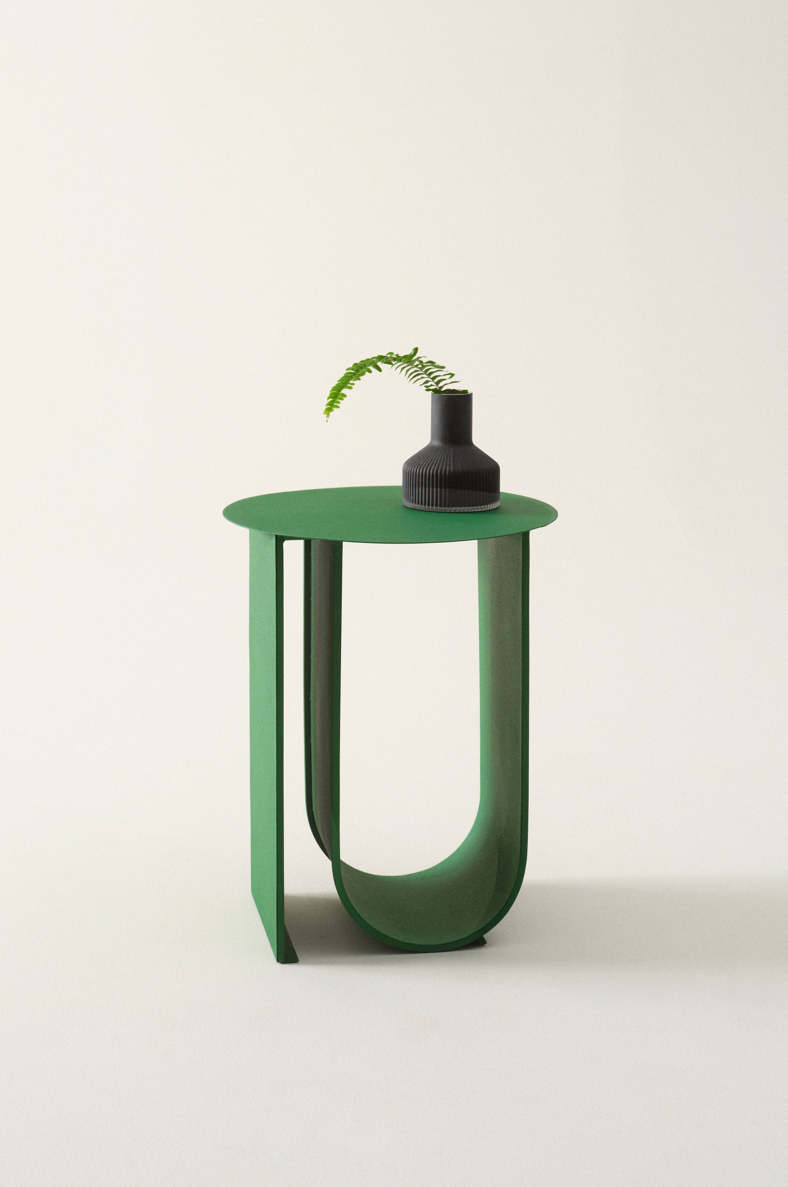 Jännittävä rautainen LOSTALLO-sivupöytä, jossa jauhemaalattu, aavistuksen rouhea pinta. Pöydässä on näyttävä jalusta, joka herättää huomiota missä vain.