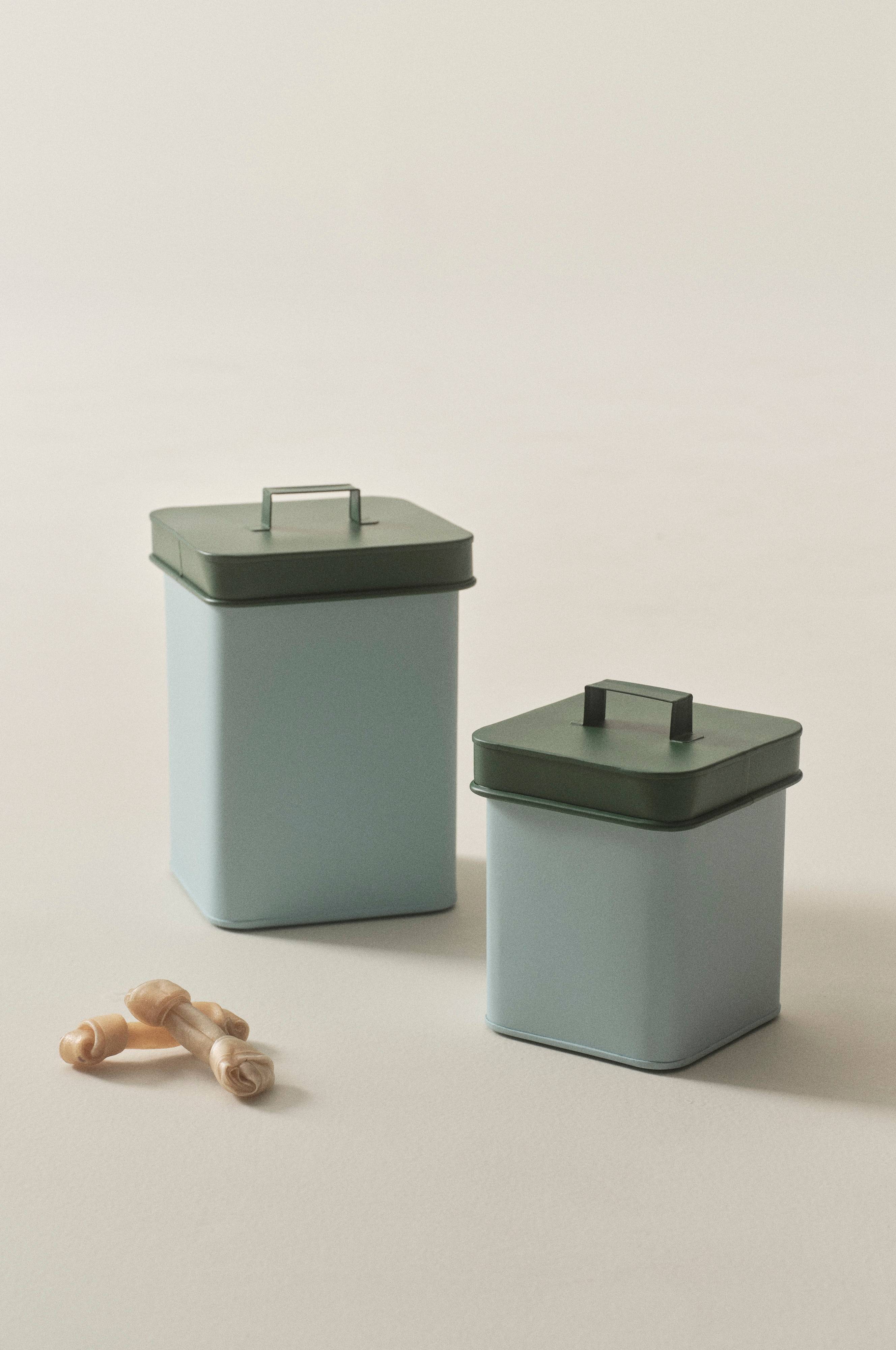 Kannelliset purkit kauttaaltaan mattapintaista rautaa. Veikeät väriyhdistelmät. 2 purkkia/pakkaus. Kannen kahva helpottaa purkkien avaamista. Purkit sopivat hyvin moniin eri tarkoituksiin ja käyvät sekä ruokatarvikkeiden että koiran kuivamuonan säilytykseen.
