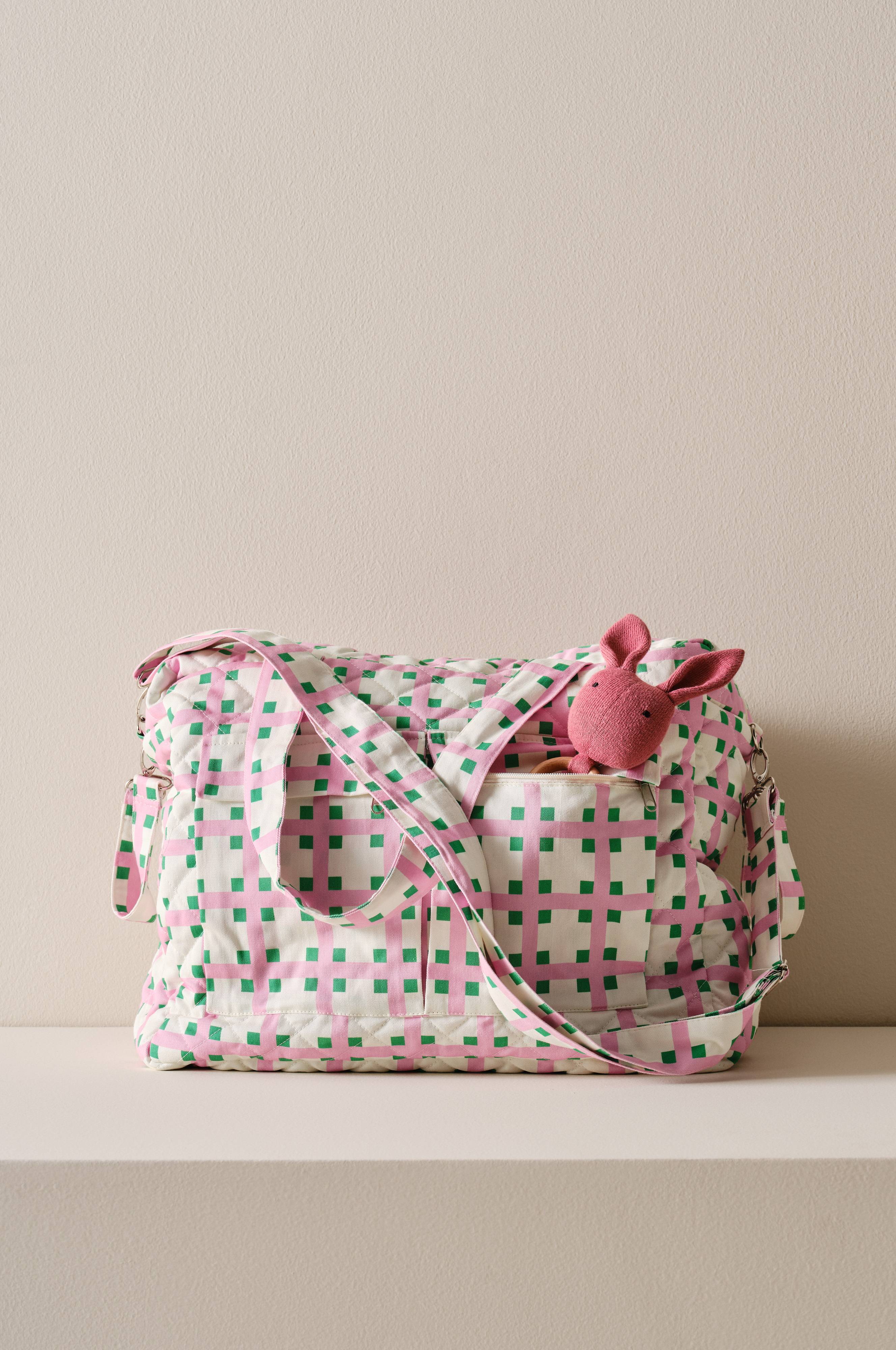 LUTZ-kuvioinen vaippalaukku, jossa yhdistyvät täydellisesti toiminta ja tyyli. Helppokäyttöinen rattaisiin ripustettuna. Kaksi vetoketjullista etutaskua ja neljä piilotettua, avointa taskua sisällä. Valmistettu puuvillasta, jossa on vettähylkivä pinnoite. Sisältää kaksi irrottamatonta kahvaa ja säädettävän hihnan monipuoliseen käyttöön. Koukuilla varustetut lisähihnat laajentavat käyttömukavuutta ja varmistavat, että kaikki olennaiset tavarat ovat käden ulottuvilla. Ihanteellinen mukavaan vanhemmuuteen.