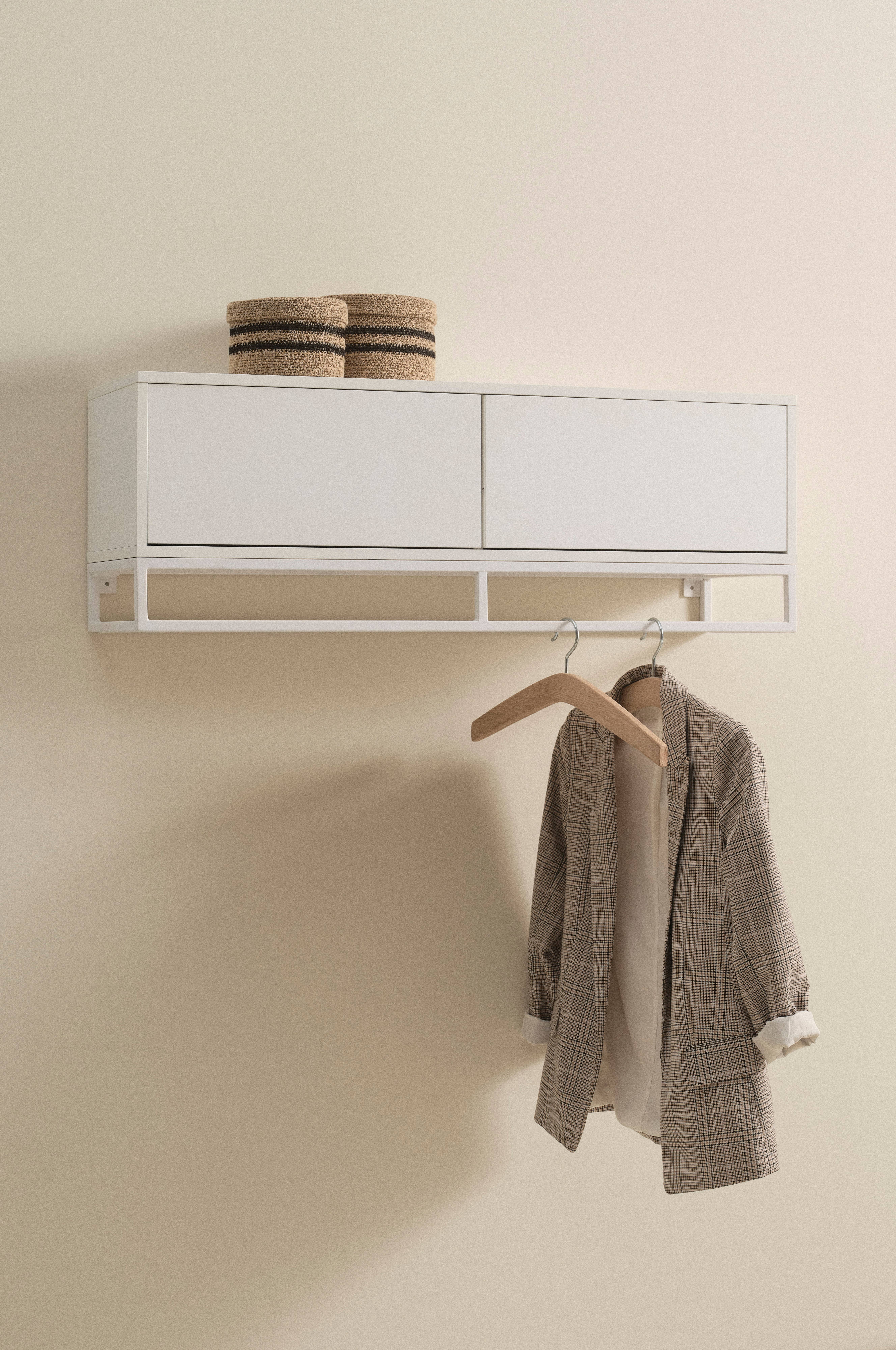 Seinäkaappi MDF-levyä, alapuolinen reuna metallia. Pelkistetyssä ja tyylikkäässä seinähyllyssä on kaksi ovea, jotka avautuvat ulospäin ja kohtaavat keskellä. Ovissa on push-toiminto. Toiminnon ansiosta kaappi on sileä ja kahvaton, silti helppo avata. Seinäkaappi sopii hyvin eteiseen. Luo yhtenäinen eteiskaluste lisäämällä kaapin alle LYCKEBY-penkki. Seinäkaapin osat ovat MDF-levyä, jossa on vesipohjainen lakka. Nelikulmainen metallireuna on jauhemaalattu. Osittain koottava. Kokoamisohje mukana.