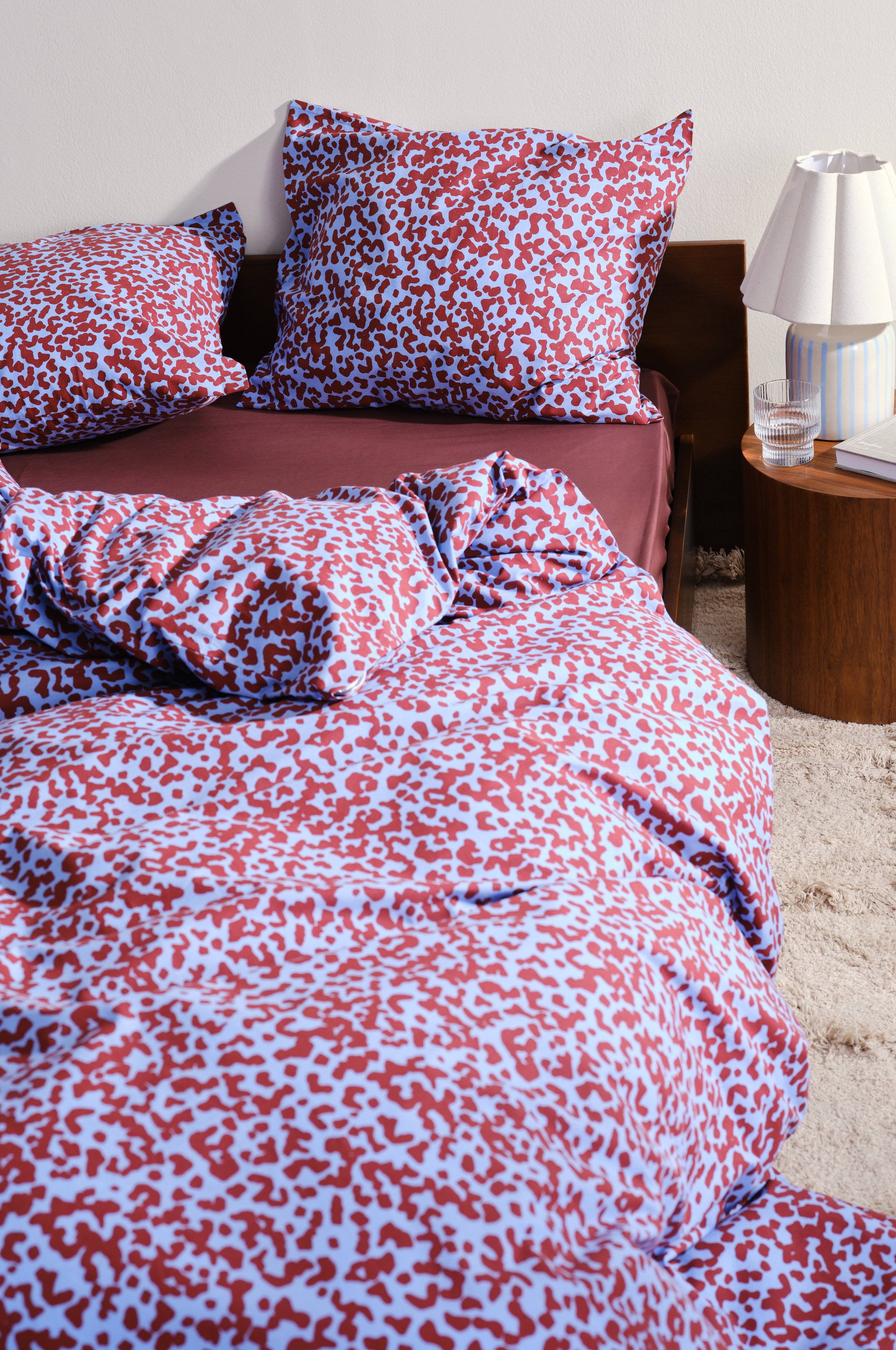 Kahden hengen MALIA-sängyn setti tuo makuuhuoneeseesi ripauksen retrohenkistä charmia Maria Carlbergin suunnittelemalla kiehtovalla leopardikuvioinnilla. Tähän settiin kuuluu yksi erittäin leveä peitto ja kaksi tyynyliinaa, jotka kaikki on painettu ekologiselle puuvillalle. MALIA on ihanteellinen trendikkääseen sisustukseen pyrkiville, ja se tuo tilaan ainutlaatuisen ja tyylikkään särmän. Tutustu koko MALIA-perheeseen, jotta saat täydellisesti koordinoituja sisustuselementtejä ja luot yhtenäisen ilmeen.