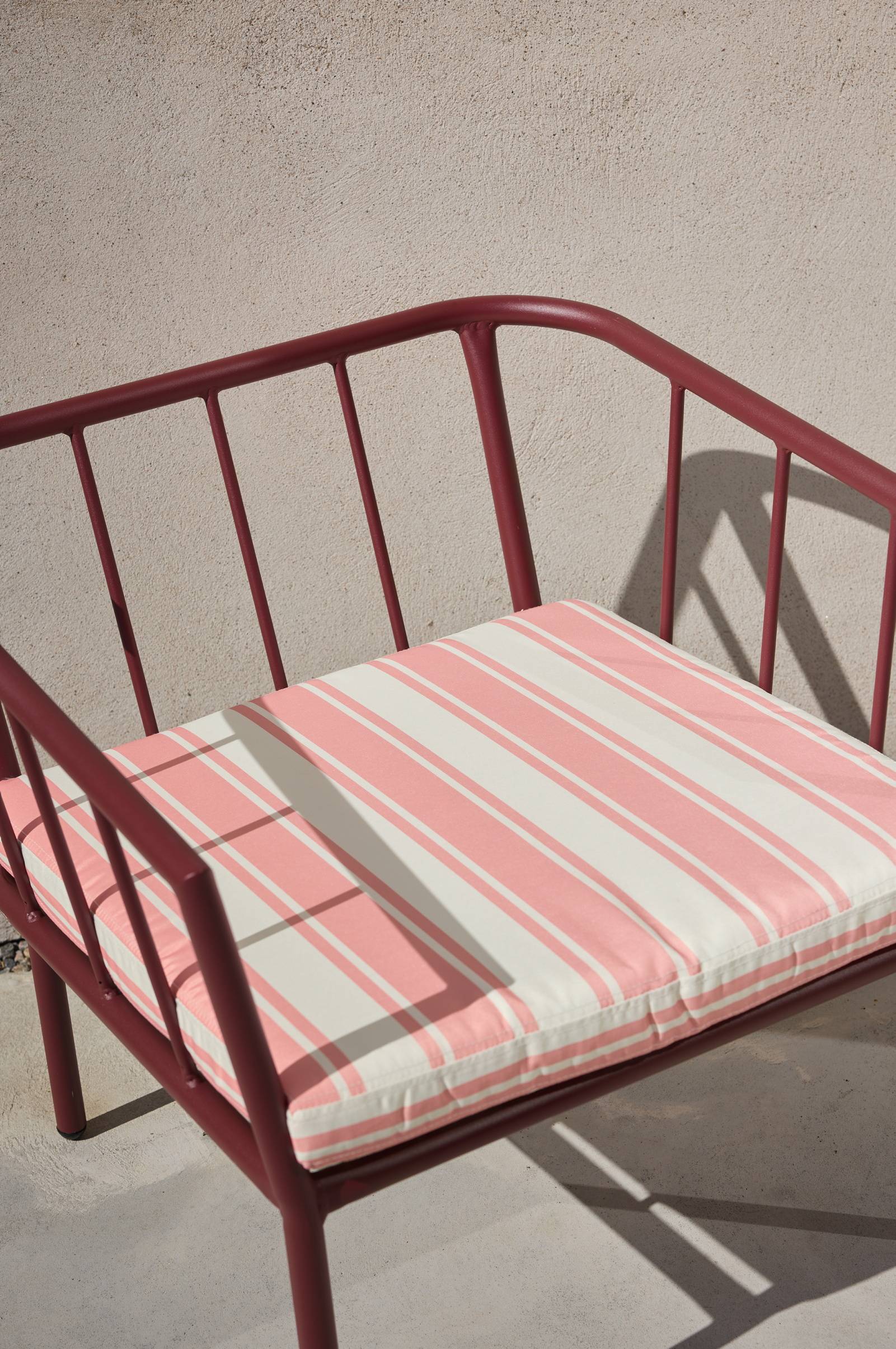 MENTON-istuintyyny parantaa ulkotilasi mukavuutta ja tuo siihen kukkakuosin. Täydellinen puutarhakalusteisiin, sen kutsuva kuvio täydentää mitä tahansa ympäristöä ja kannustaa sinua rentoutumaan ja nauttimaan ulkoilmasta. Monipuolisesti suunniteltu istuintyyny on ihanteellinen kumppani rauhalliseen oleskeluun tai vilkkaisiin kokoontumisiin. Se on valmistettu tarjoamaan miellyttävän istumakokemuksen, ja se on täydellinen sekoitus puutarhatekstiilikokoelmaasi.