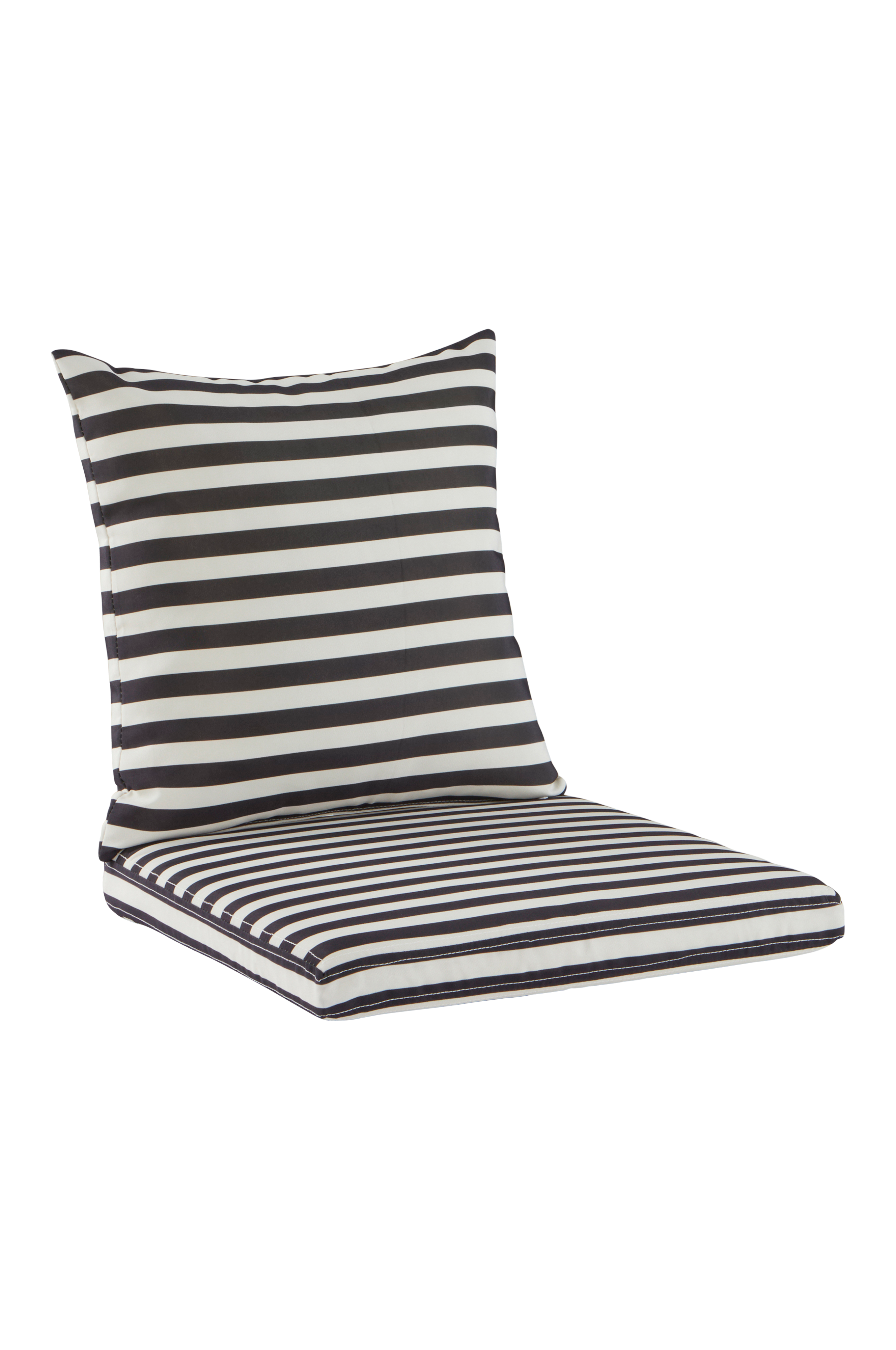 Raidallinen ulkokalusteiden pehmustesetti. Setti sisältää istuinpehmusteen ja tyynyn. Päällinen puuvillaa, polyesteriä ja kierrätettyä kuitua. Kankaassa on vettä hylkivä pinnoite. Pehmusteessa ja tyynyssä on vaahtotäyte. Vetoketjullinen päällinen on irrotettava.