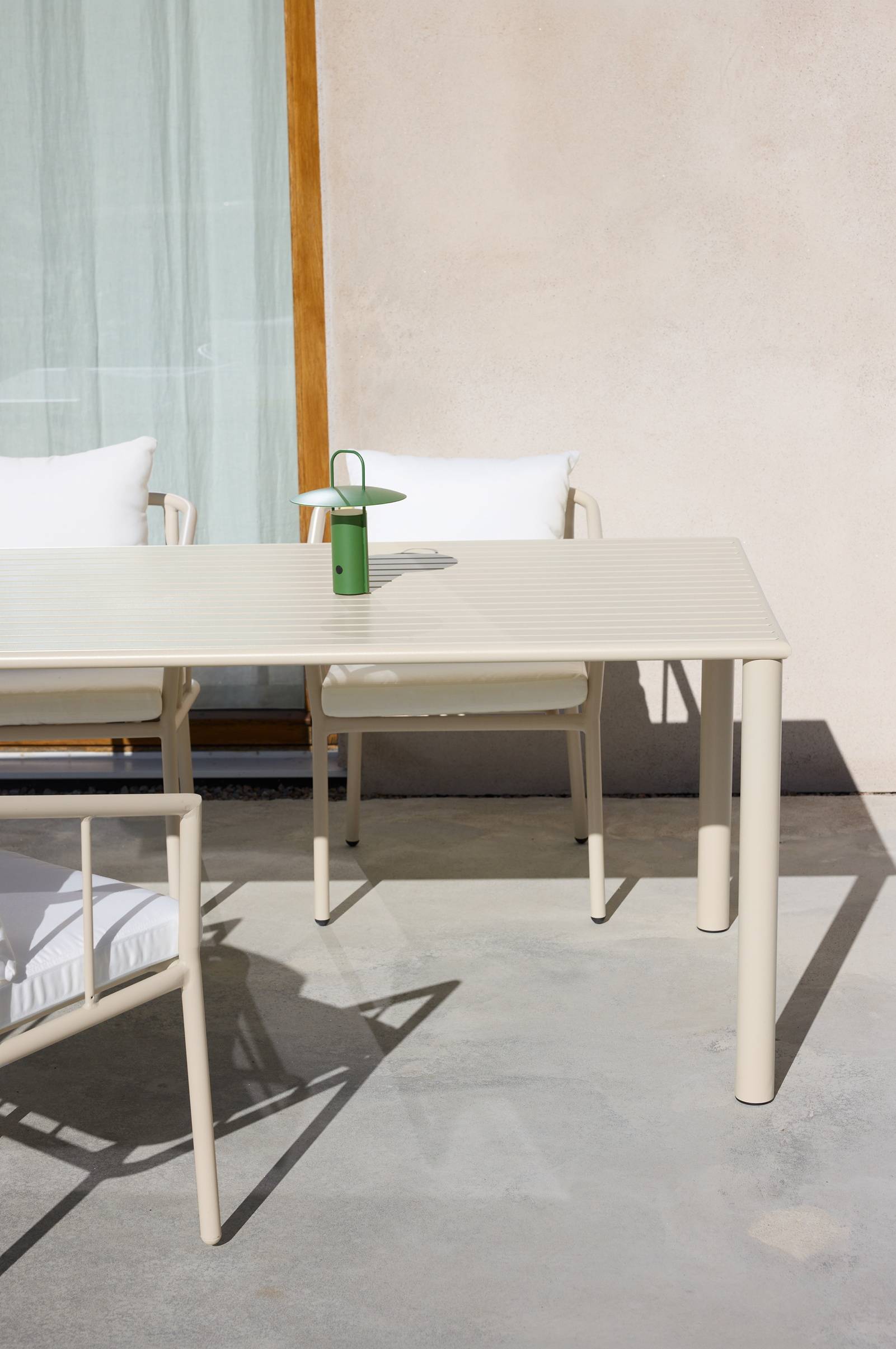 Jauhemaalattu alumiininen ruokapöytä, jonka mattapintainen pinta ei häikäise auringonvalossa. MENTON voi seistä ulkona ja se helpottaa elämää ulkona. Sinun ei tarvitse kantaa heti, kun haluat istua ulkona. Kaluste on siisti ja antaa mukavan tunnelman terassilla tai patiolla. Alhainen paino.