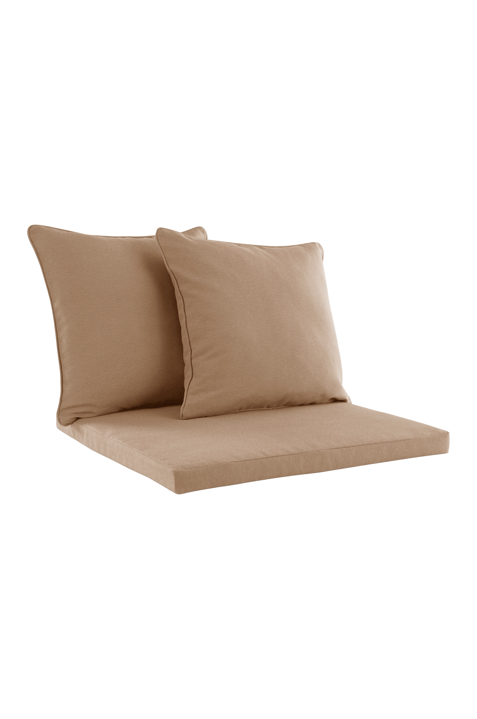 Ulkokalusteiden tyynysarja. Setti sisältää istuintyynyn ja kaksi tyynyä. Setti on verhoiltu puuvillalla, polyesterillä ja kierrätyskuidulla. Sekä tyynyssä että tyynyissä on vaahtomuovitäytteinen sisätyyny. Päällinen on irrotettava ja siinä on vetoketju. Tyyny sopii MENTON-nojatuoliin, MENTON-jakkaraan/pöytään ja MENTON-loungekalusteiden nojatuoliin.