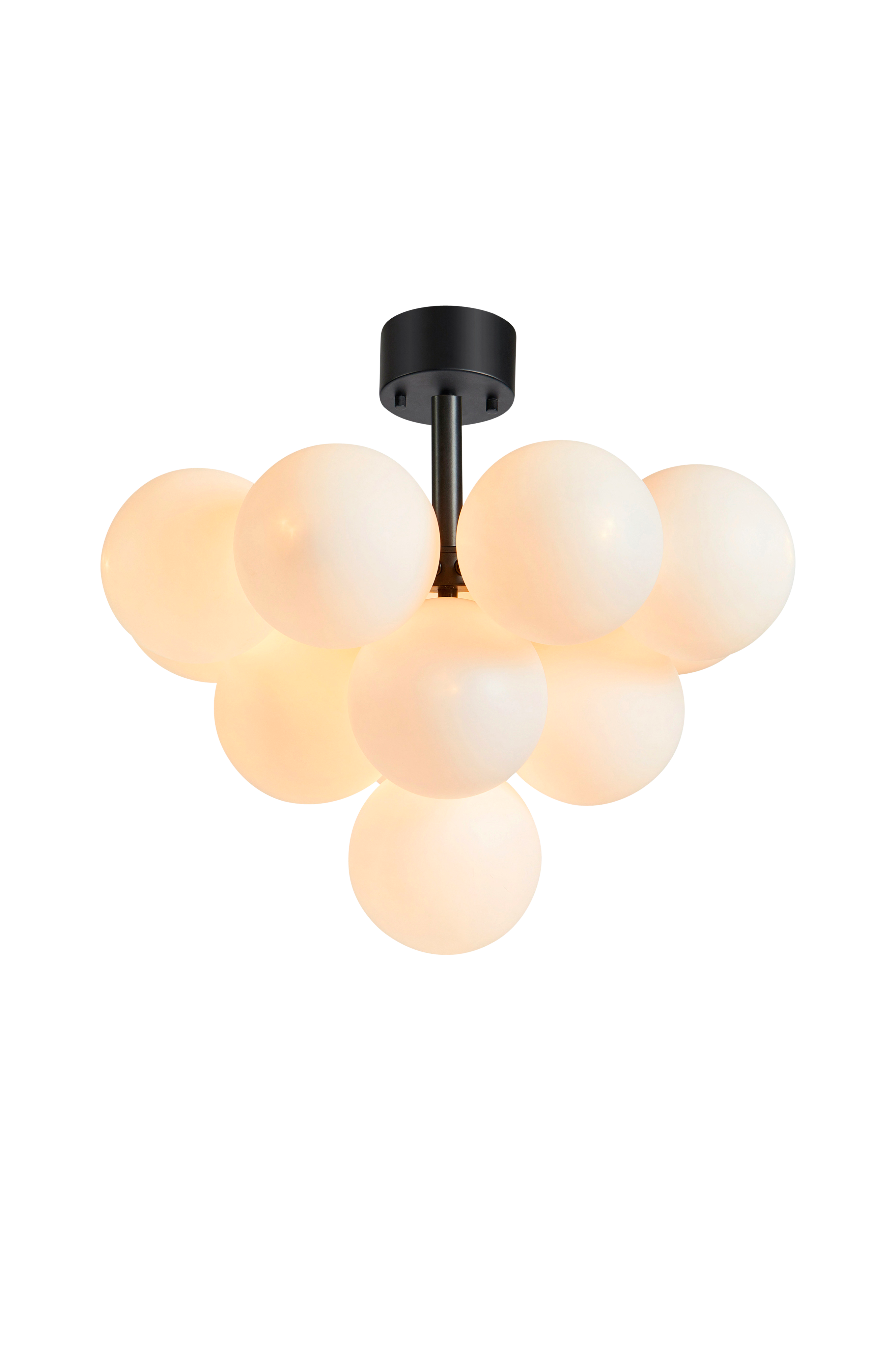 Kaunis katto, jossa on musta metallikehys. MERLOT on 13 koristeellisen lasipallon ansiosta todellinen taideteos olohuoneessasi. Ripustetaan kattokoukulla.