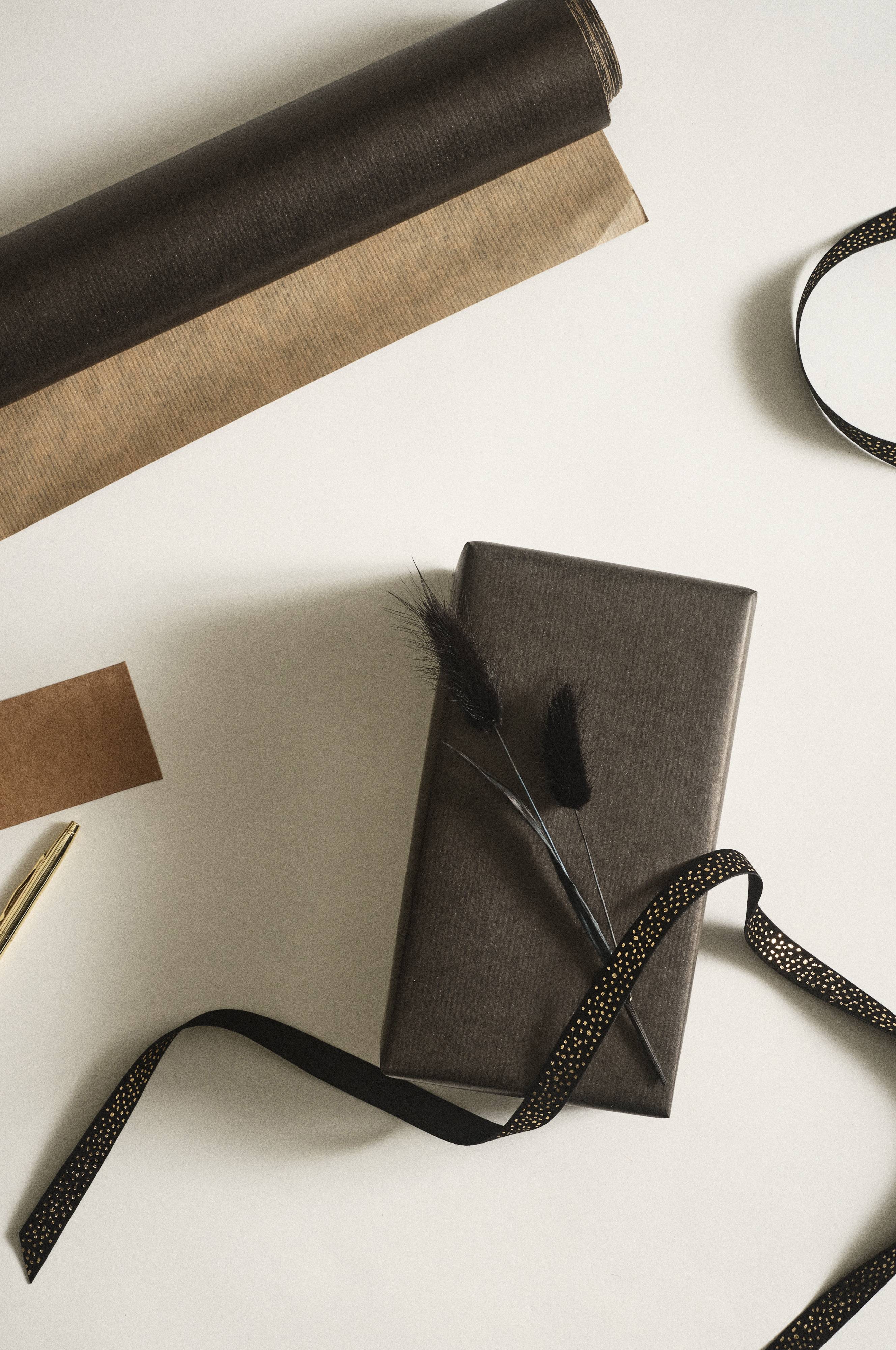 Vinkki: Voimapaperi on ruskeaa, joten myös sen taustapuoli on sävyltään ruskea. Paketoi tyylikkäästi kääntämällä reunat niin, että taustapuolen sävy tulee näkyviin.
