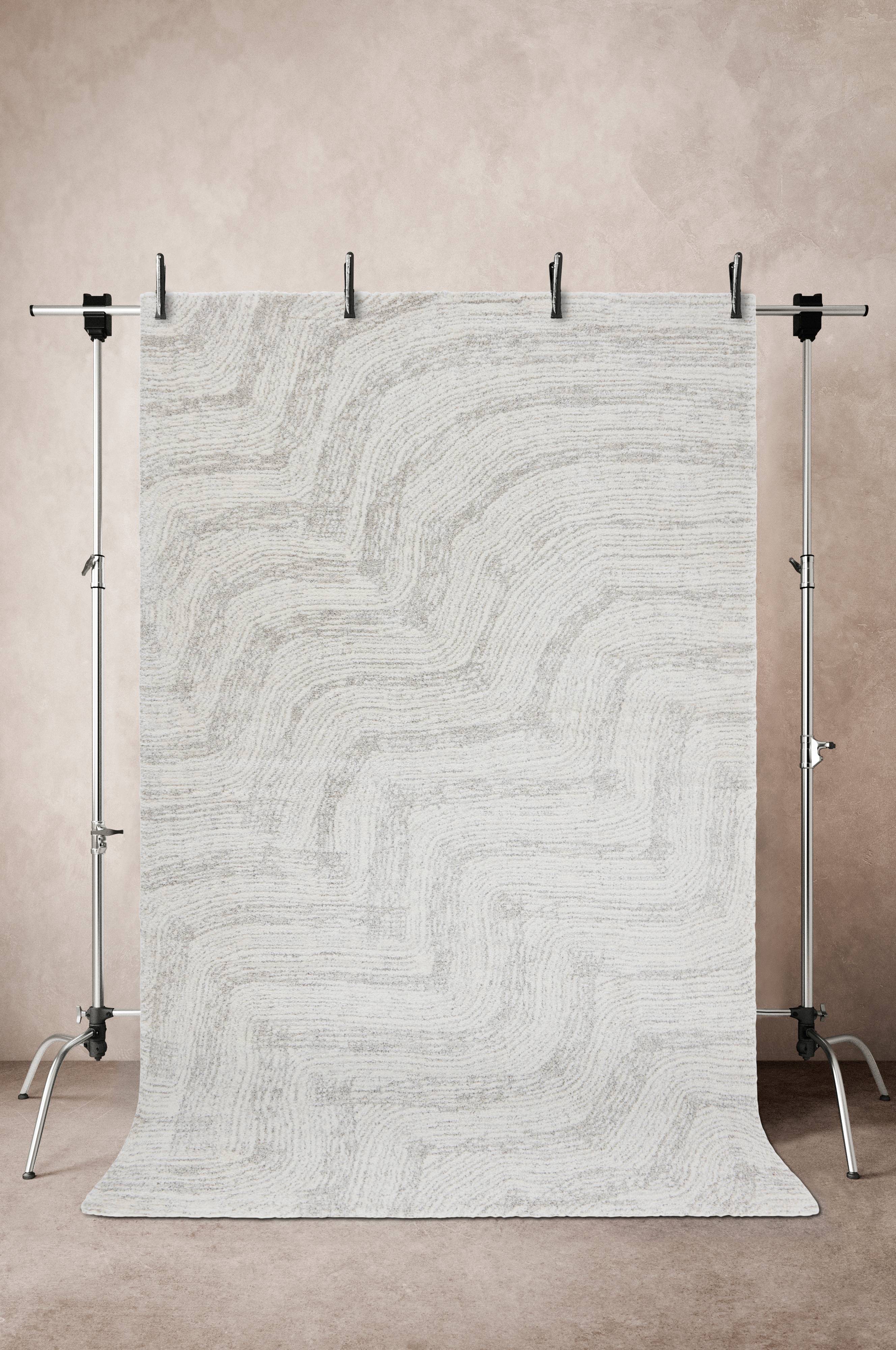 Sileä matto, jossa kudontatekniikalla luotu sointuvan sävyinen aaltoileva kuvio. Kaunis kuvio tuo mieleen aaltojen hiekkaan jättämät kuviot tai puun vuosirenkaat. Matto on pehmeä ja miellyttävän tuntuinen. Paksuus 1,6 cm. 2300 g/m².
