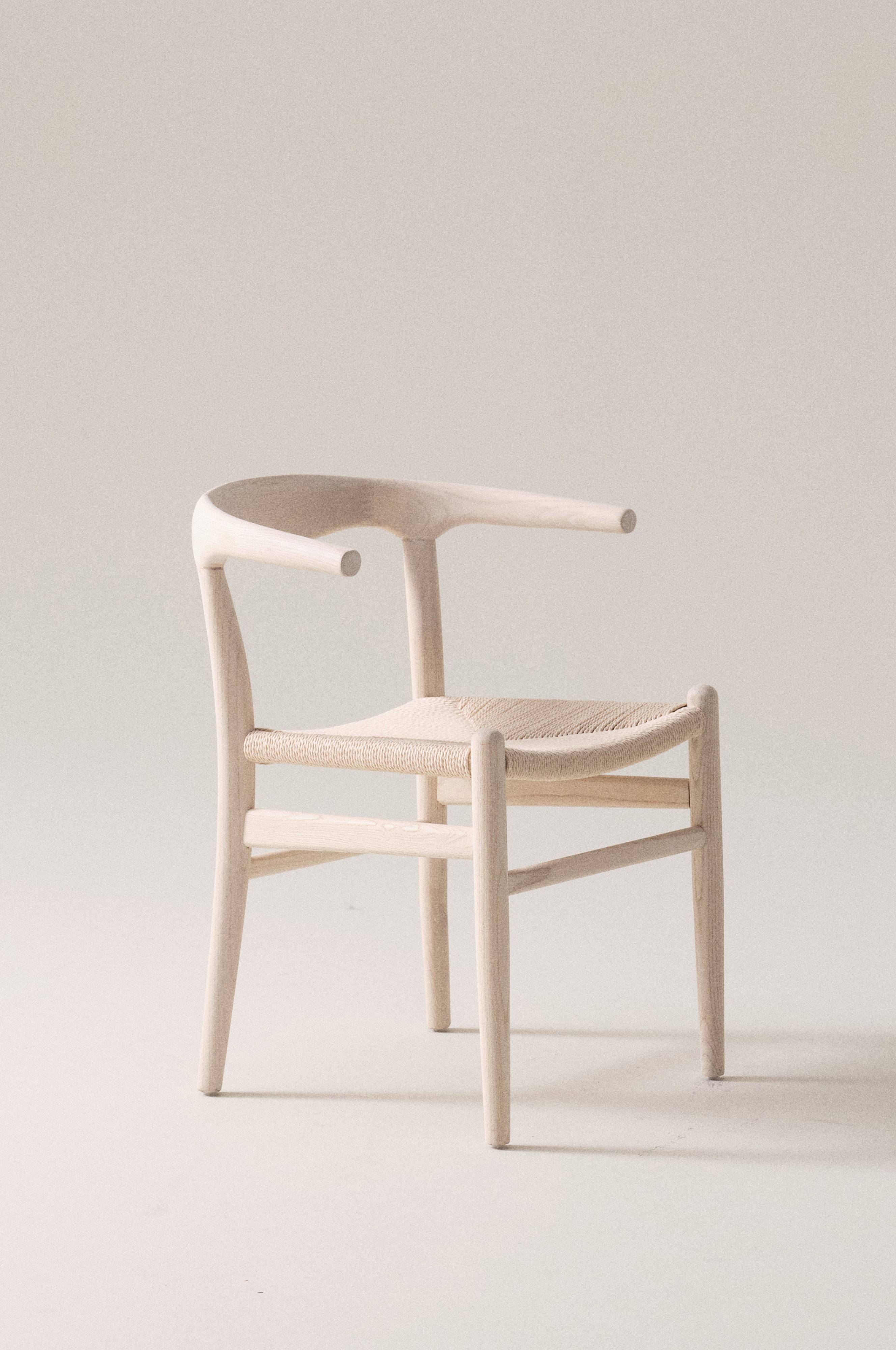Tuoli massiivijalavaa. Puunvärinen, musta/luonnonvärinen ja pähkinäpuunvärinen/luonnonvärinen on pintakäsitelty lakalla. Vaaleaksi käsitellyssä jalavassa, jossa vaalea ja musta istuin, ei ole lakkausta. Istuin paperinarua. Vankka jalava ja paperinaruistuin muodostavat kauniin kontrastin ja takaavat hyvän istumamukavuuden.