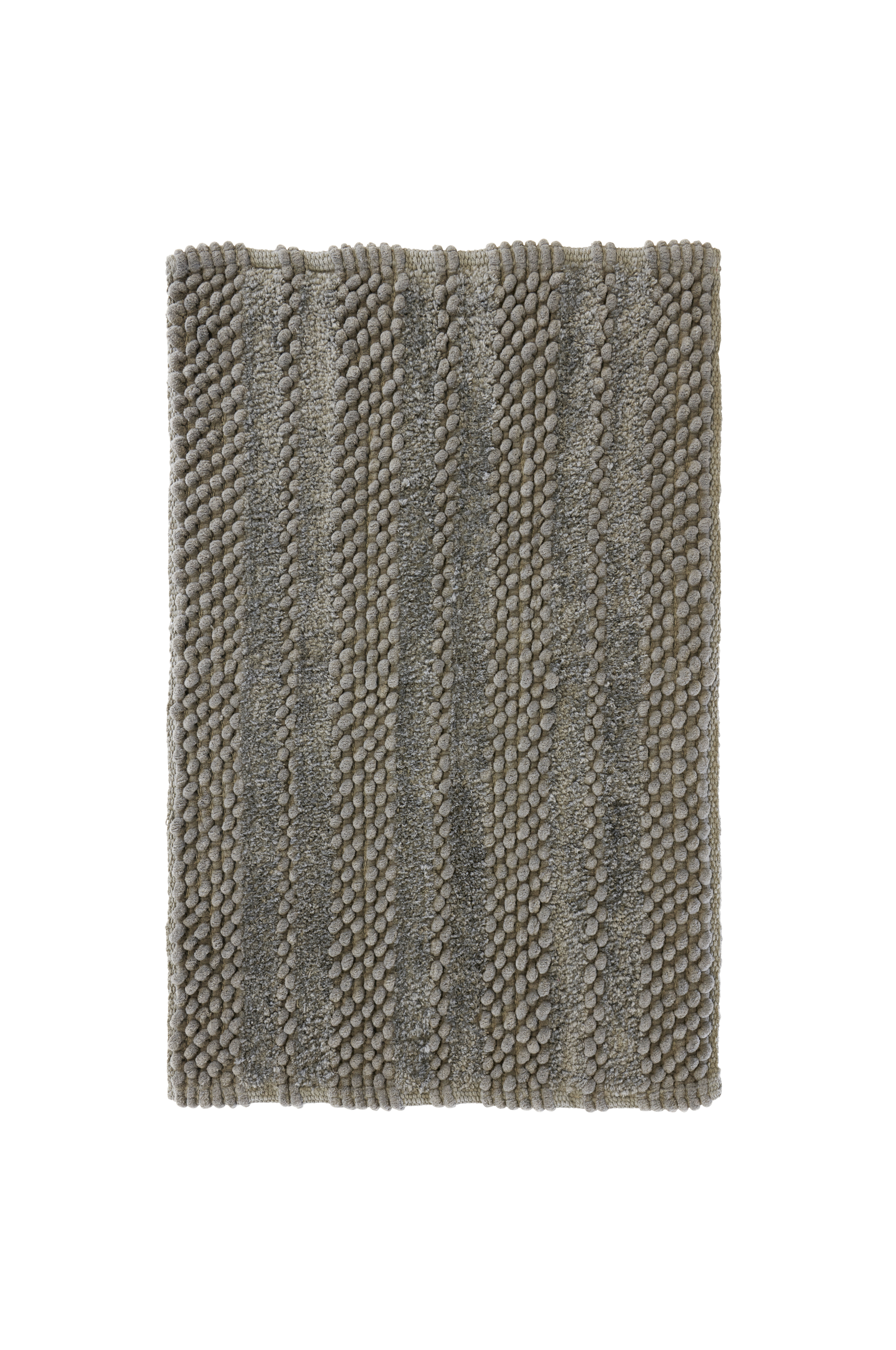 Kudottu kylpyhuonematto, jossa raidallinen silmukka-popcorn-struktuuri. Veikeä kylpyhuonematto, joka tuntuu mukavan pehmeältä jalkojen alla. 1450 g/m².