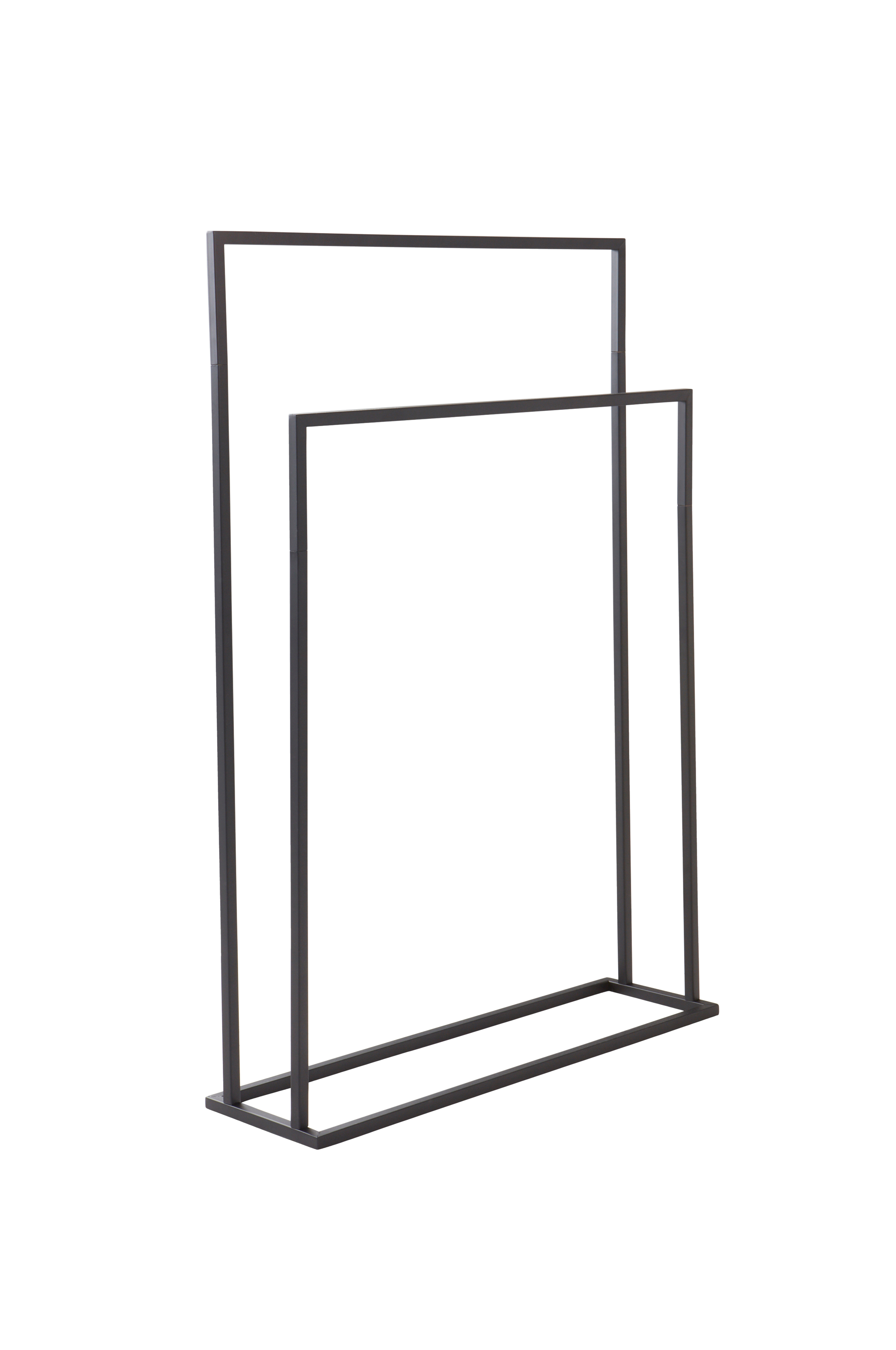 Tyylikäs lattiateline pyyhkeiden ripustamiseen. Mustaa, mattalakattua metallia. Tyylikäs ja käytännöllinen tapa kuivattaa pyyhkeet suihkun jälkeen. Osittain koottava. Kokoamisohje mukana.